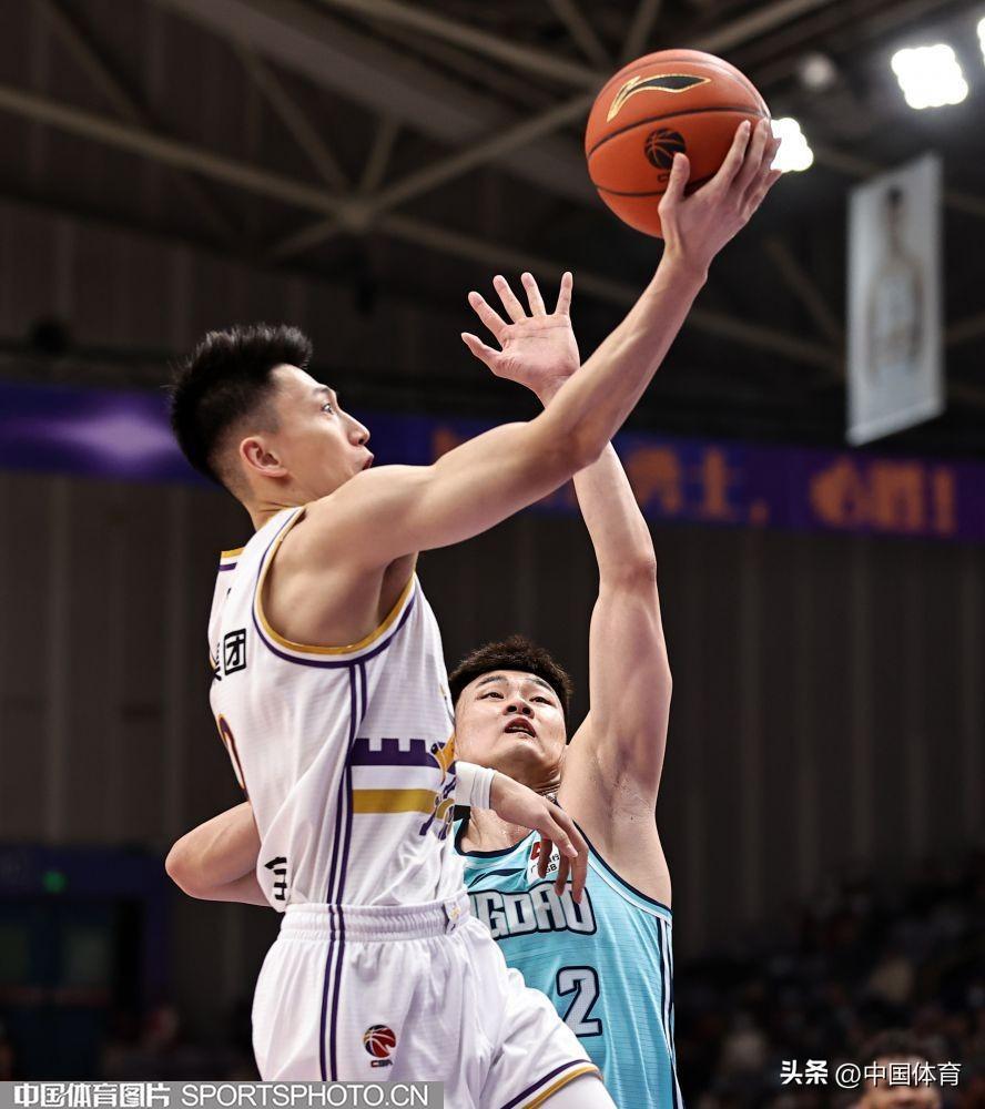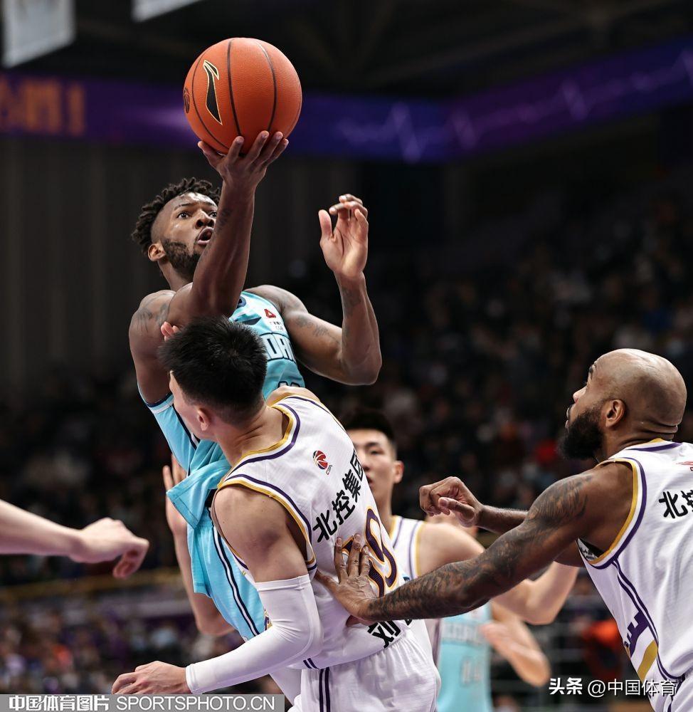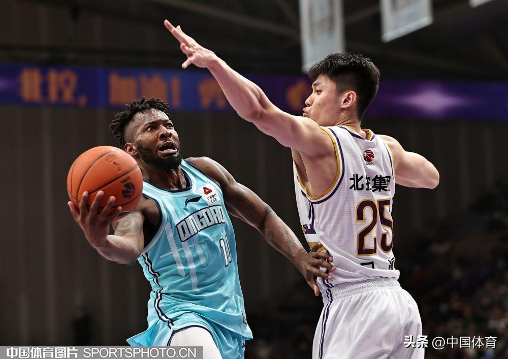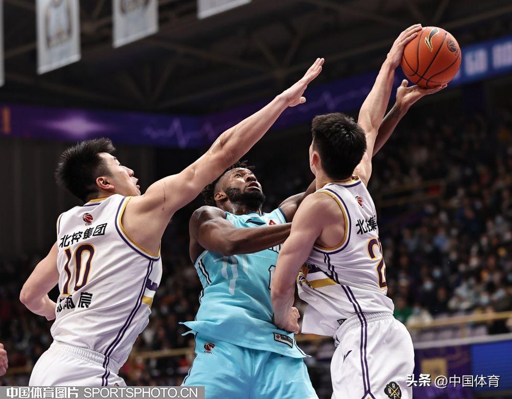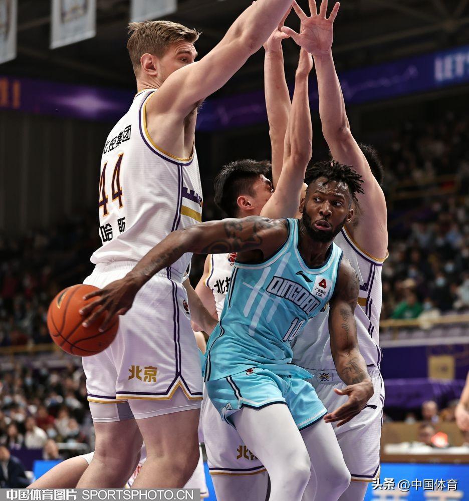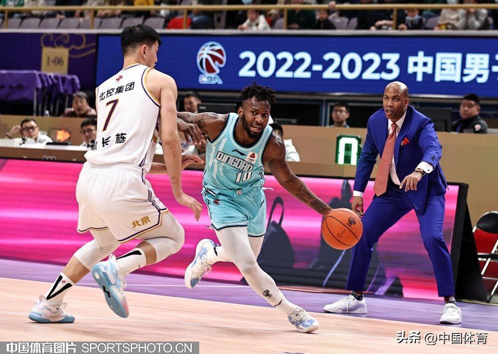 中國體育訊 3月18日晚,2022-2023賽季CBA常規賽第36輪的一場比賽在北京奧體中心體育館上演。 主場作戰的北京控股隊(白衣)以110比83大勝青島國信水產隊(藍衣)三連勝。前兩輪比賽中,北京控股連勝江蘇隊和山西隊。 (中國體育圖片 王憲民 攝)