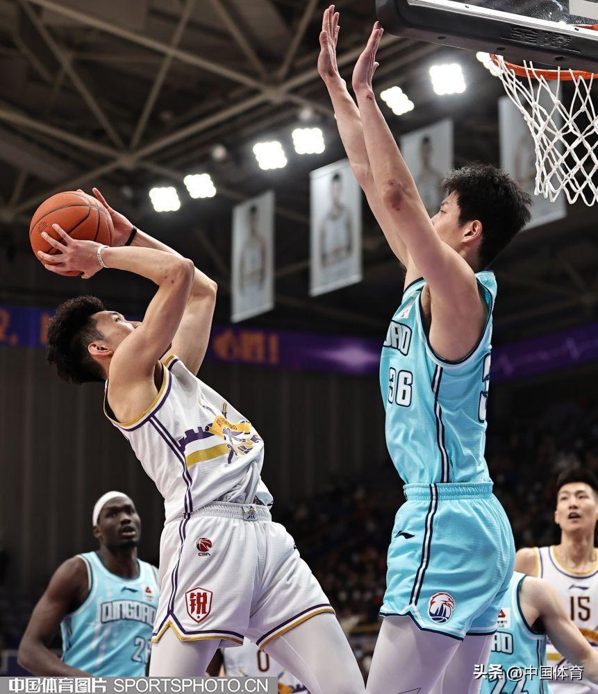 劉曉宇突破上籃,王睿澤(右)封蓋