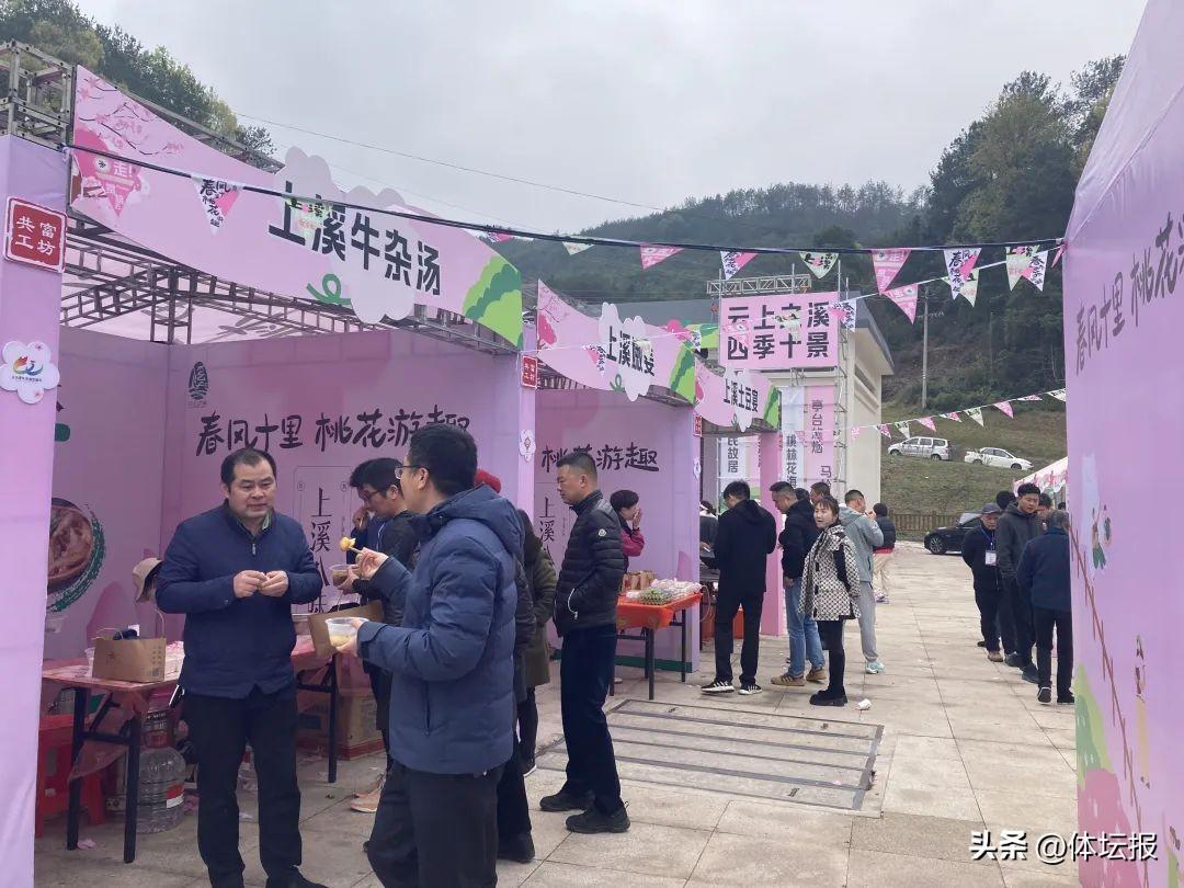 當天還舉行了上溪鎮旅遊文化節啓動儀式。現場40餘個商家擺出了當地特產和小喫,上溪青柴棍、吳店饅頭、吳店索麪琳琅滿目。