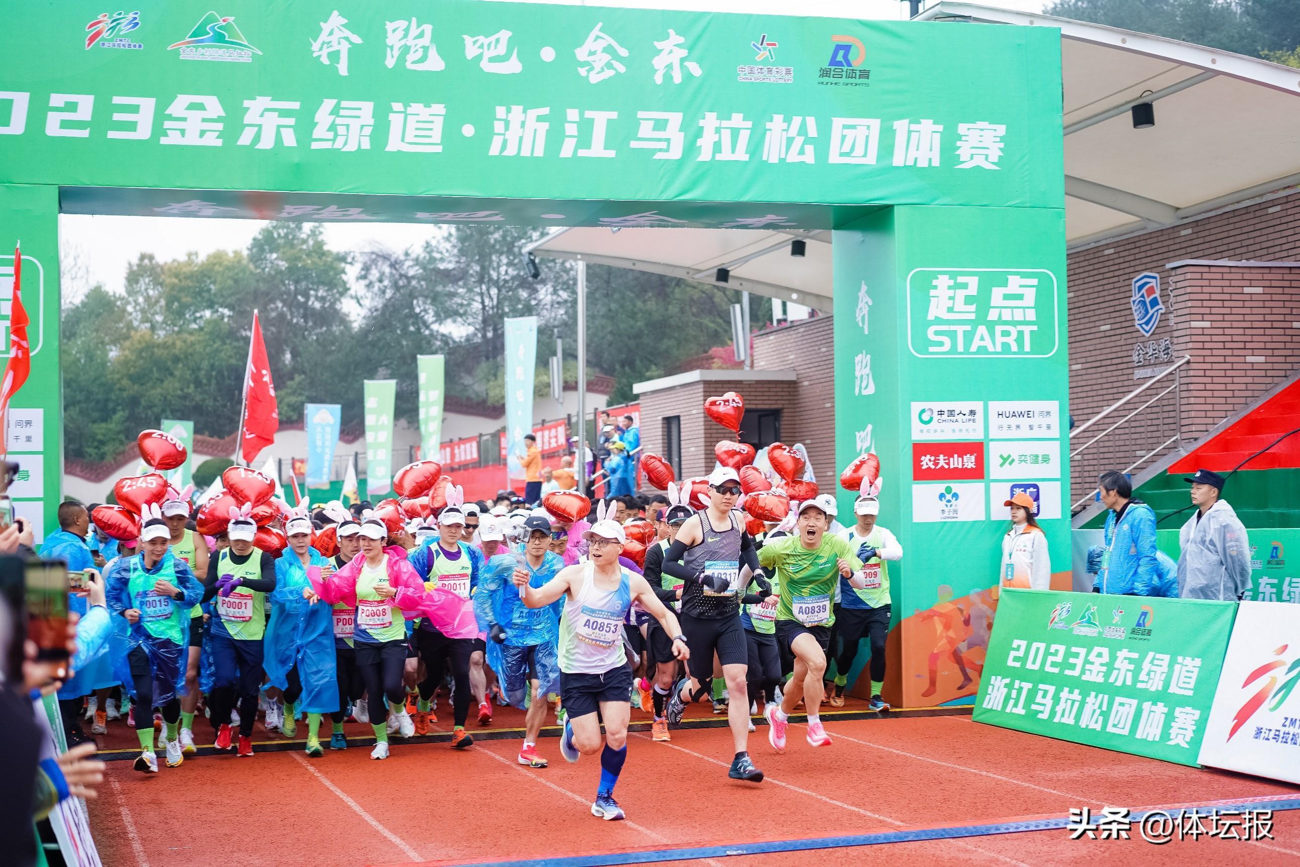 3月19日上午,2023金東綠道·浙江馬拉松團體賽在金華海亮外國語學校鳴槍開跑,來自全國各地的3000名跑友參加。比賽分半程馬拉松21.0975公里和健康跑8公里。