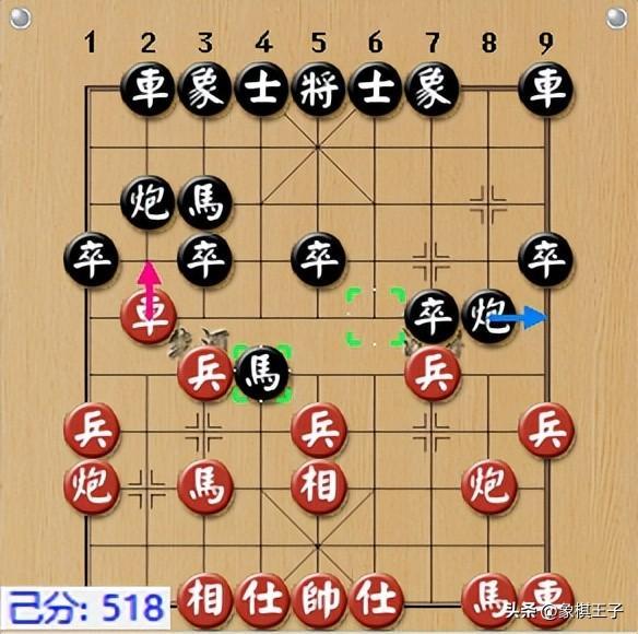 黑單步虧損超500分,此才七個回合,黑臨崩潰風險,黑棋隨即平邊炮打車,撲馬要臥槽,過7路卒。