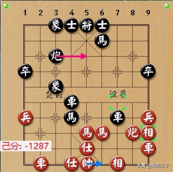 是際紅雙車炮佔位好,黑多雙卒,黑處上風,紅也有望謀和,黑通過交換,破紅仕相,紅兌黑車,喫黑兩卒,局上成爲車炮單仕相對車馬士象全。