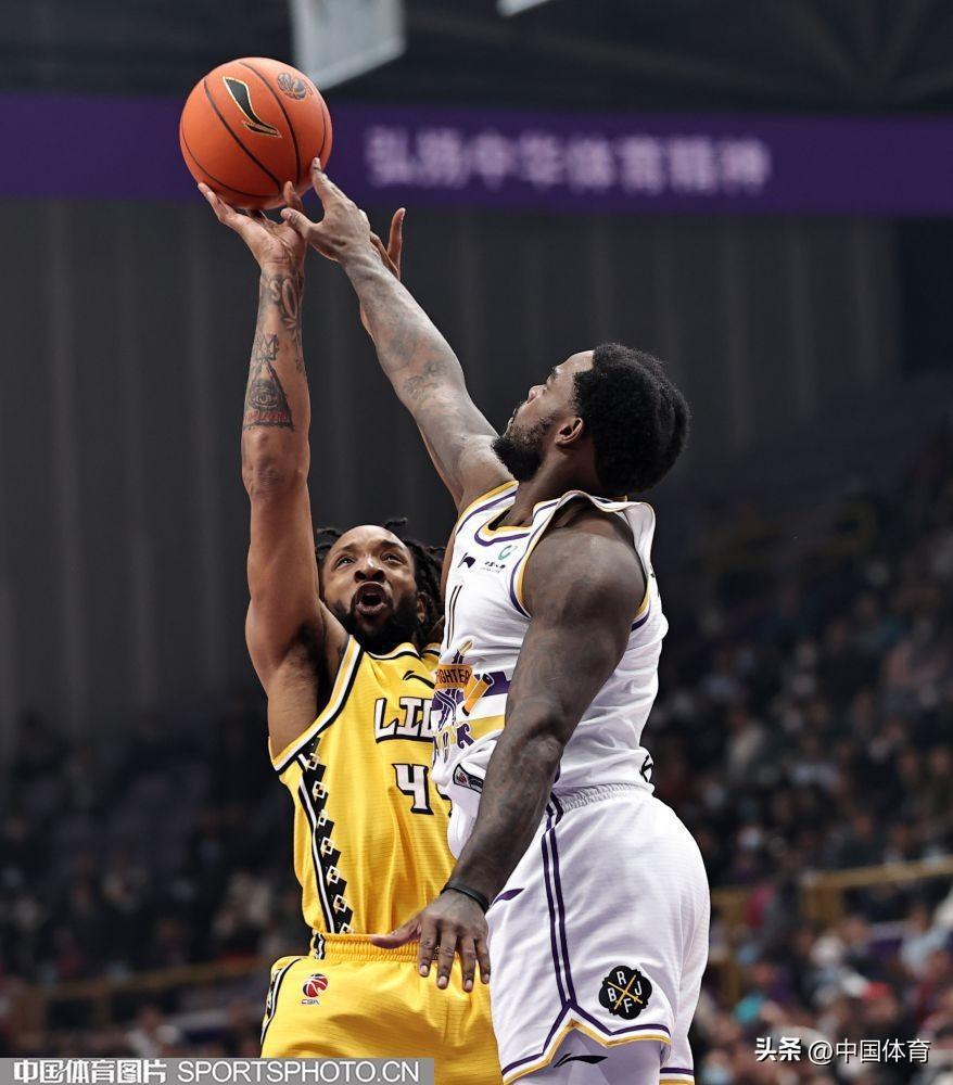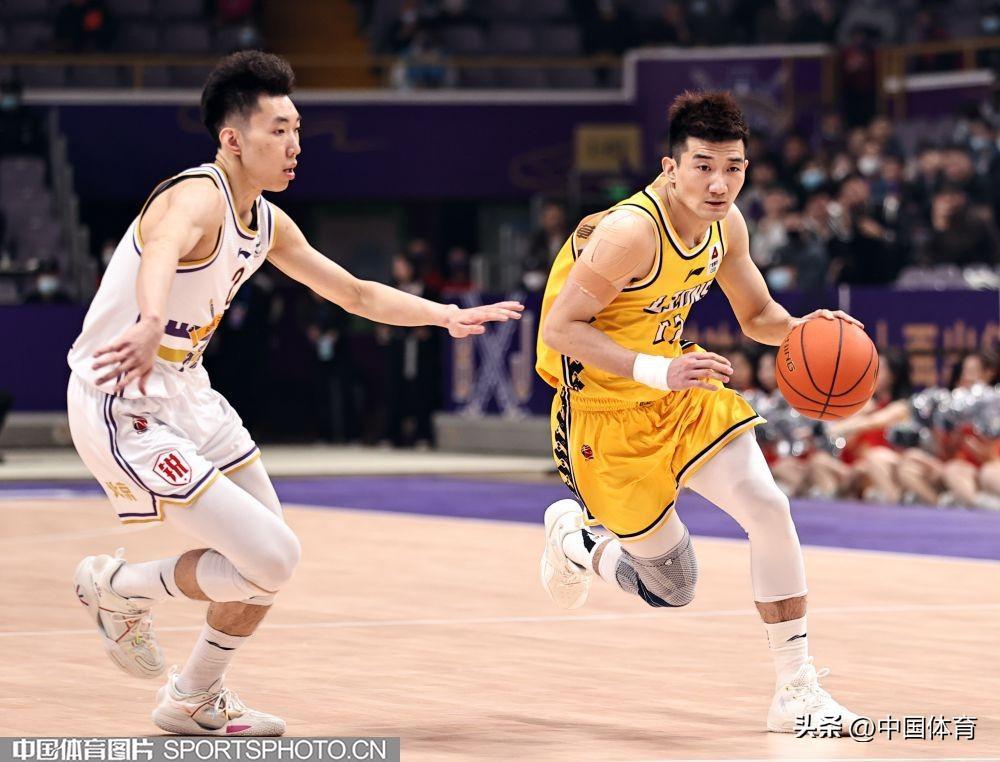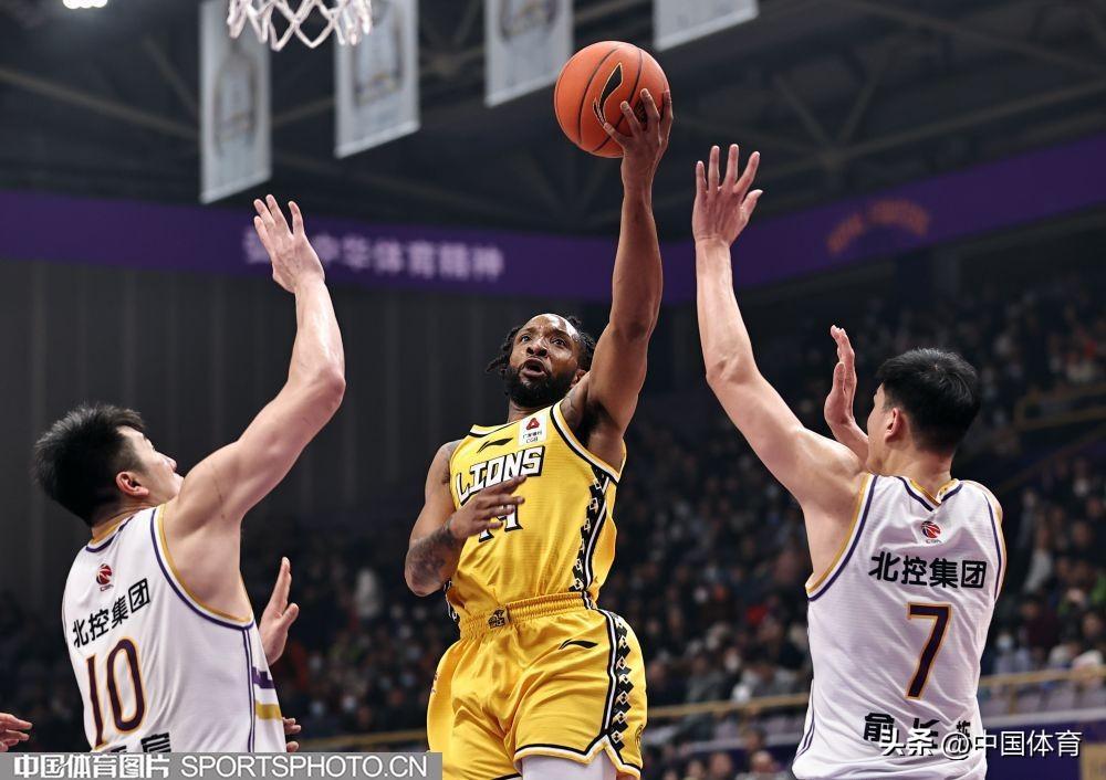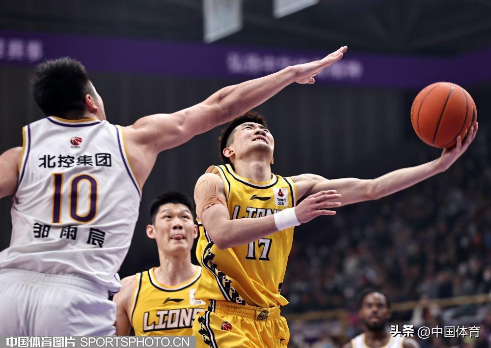 中國體育訊 3月20日,2022-2023賽季CBA聯賽常規賽第37輪的一場比賽在北京奧體中心體育館上演。主場作戰的北京控股隊(白衣)經過加時賽以102比107惜敗於浙江東陽光隊(黃衣),後者則贏得四連勝。(中國體育圖片 王憲民 攝)