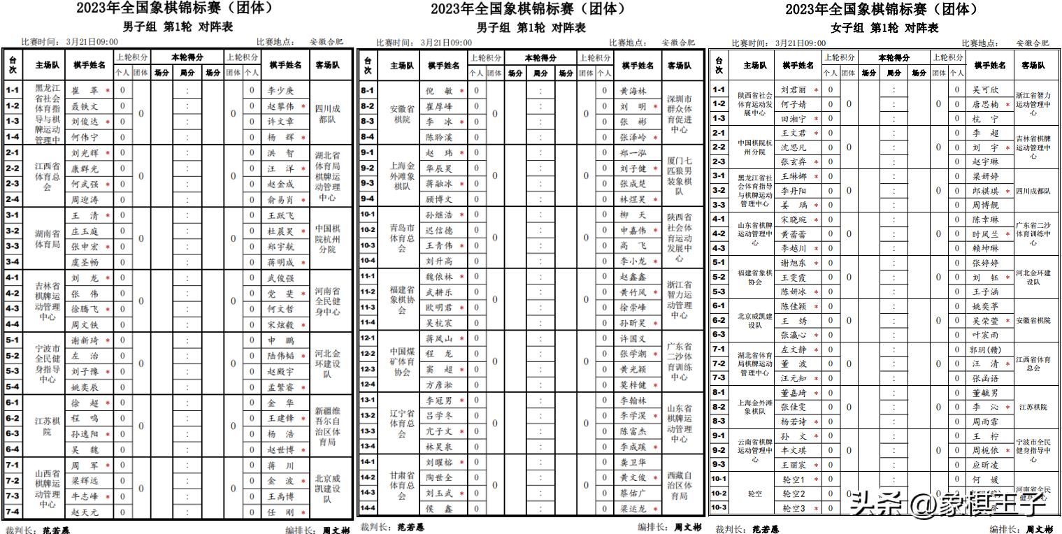看天下風雲大戲,一年一度的全國最高團體大戰錦標,2023團體賽,169位強手,二十九支戰隊,21-25日,鹿死誰手,誰主沉浮,誰是新一屆的全國男女團體至尊,拭目以待,象棋王子也將展開全程的直播和報道,敬請關注、支持、守護,謝謝!