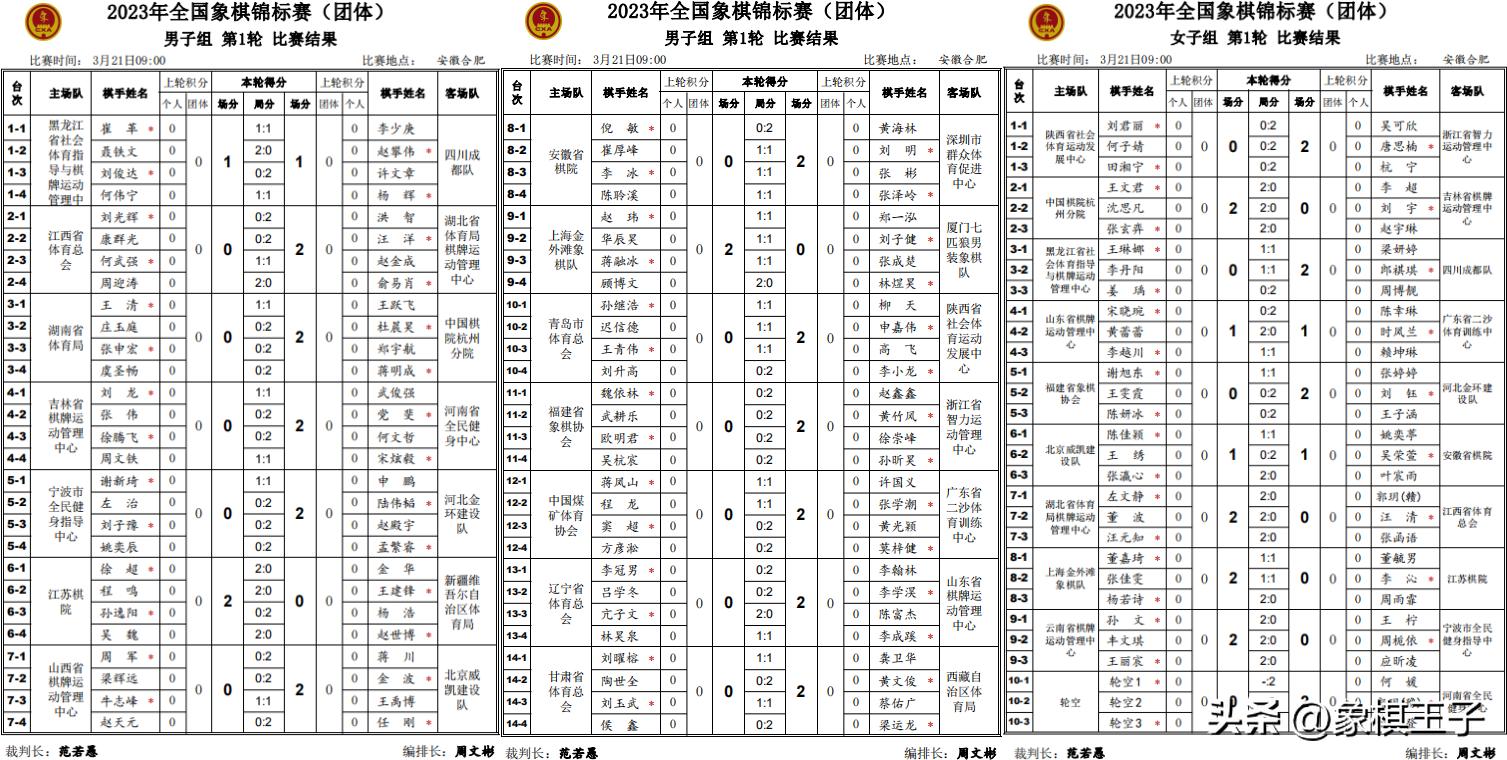 首日兩仗下來,男團河北、浙江、江蘇、上海、西藏二連勝4分並駕齊驅,湖北、北京、四川、陝西3分。