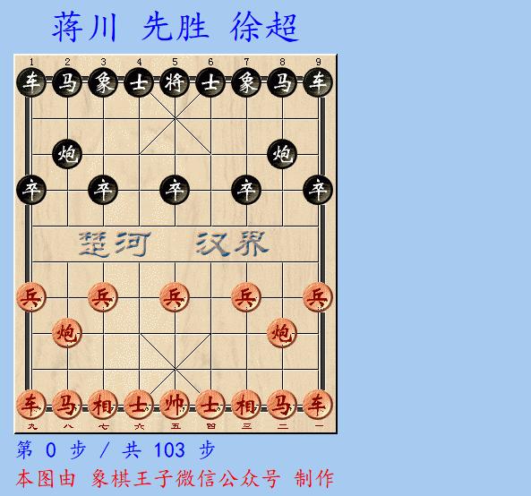 首臺,京冀隊主將蔣川強力發威,他在執先與江蘇隊徐超的廝殺中,雙方飛相對過宮炮開局。