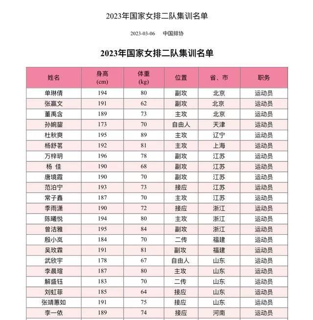 至於22人大名單,雖然大部分球員都不熟悉,但萬梓玥、楊佳、陳曦悅、曾雅潔大家還是比較熟悉的,看情況也是這4人領銜,尤其是萬梓玥和楊佳,這兩位江蘇女排的新人副攻,今年聯賽也都是首發出場,表現也相當不錯。尤其是萬梓玥,承載着00後一代女排副攻新人的希望,希望今年的訓練她可以有所收穫!而陳曦悅和曾雅潔,也是最近幾年黑馬福建女排裏的中堅力量,這一次本來也都出現在了一隊名單裏,多加歷練去成年組等機會,也只是時間問題!![]()