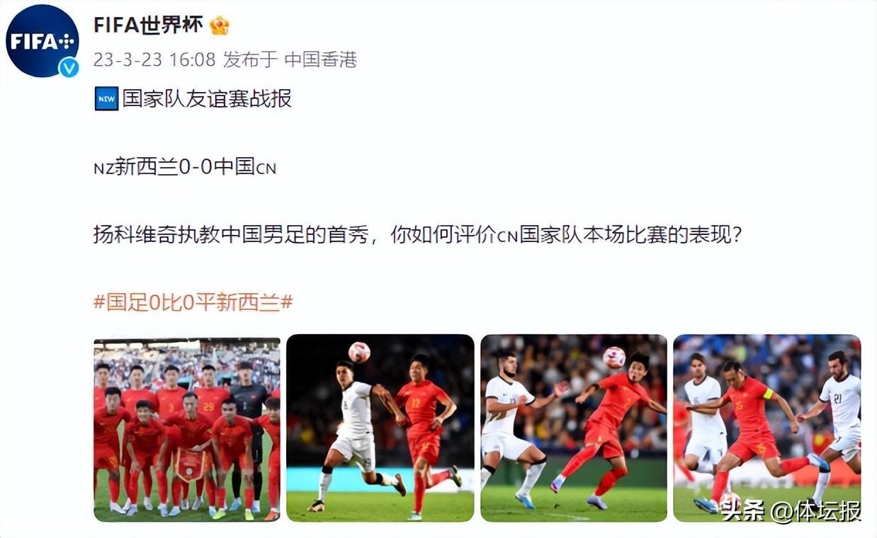 上半場,國足在場面上被對手壓制,劉彬彬回傳失誤險些送禮,韋世豪小禁區前射門被撲出;下半場,武磊錯失良機,隨後製造對手紅牌,林良銘門前頭球頂偏。最終,國足0-0戰平新西蘭,遭遇8場比賽不勝。