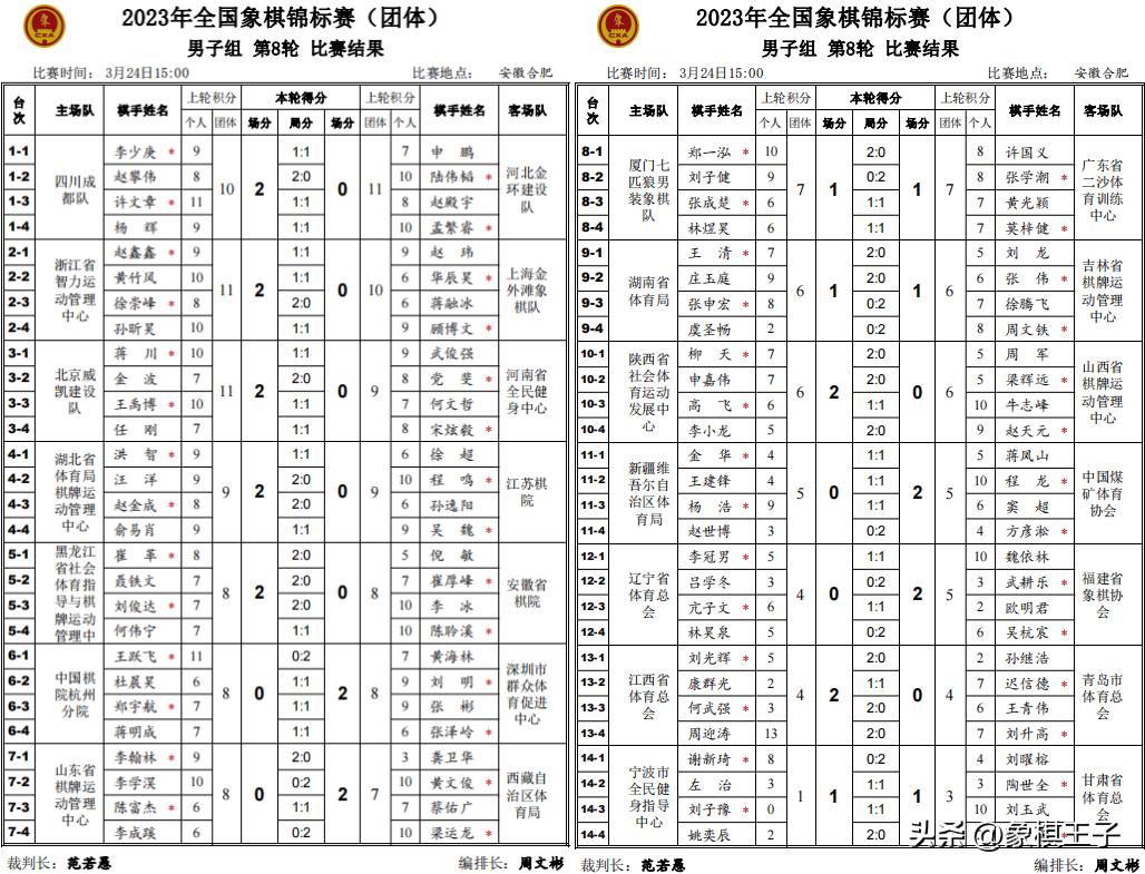 團體賽戰罷四日八輪,男團浙江、北京13分,四川12分,湖北、河北11分,上海、黑龍江、深圳10分。