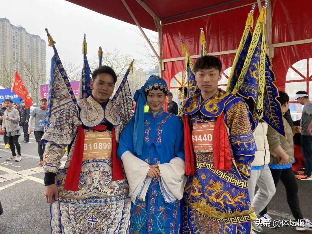 還有很多來自五湖四海的馬拉松愛好者及橫漂演員,身着奇裝異服,穿插在人羣中,和大家一起奔跑。穿着一身行頭與跑友們熱情互動的趙培春是參與穿越跑的一員,年僅20歲的他,因爲從小受到父親的耳濡目染,懷揣着一腔“戲曲夢”。