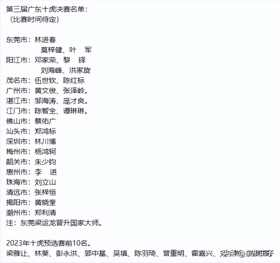 值得一提的是,就在團體賽的同期,新一屆廣東十虎總決賽參戰團的成員全部產生。