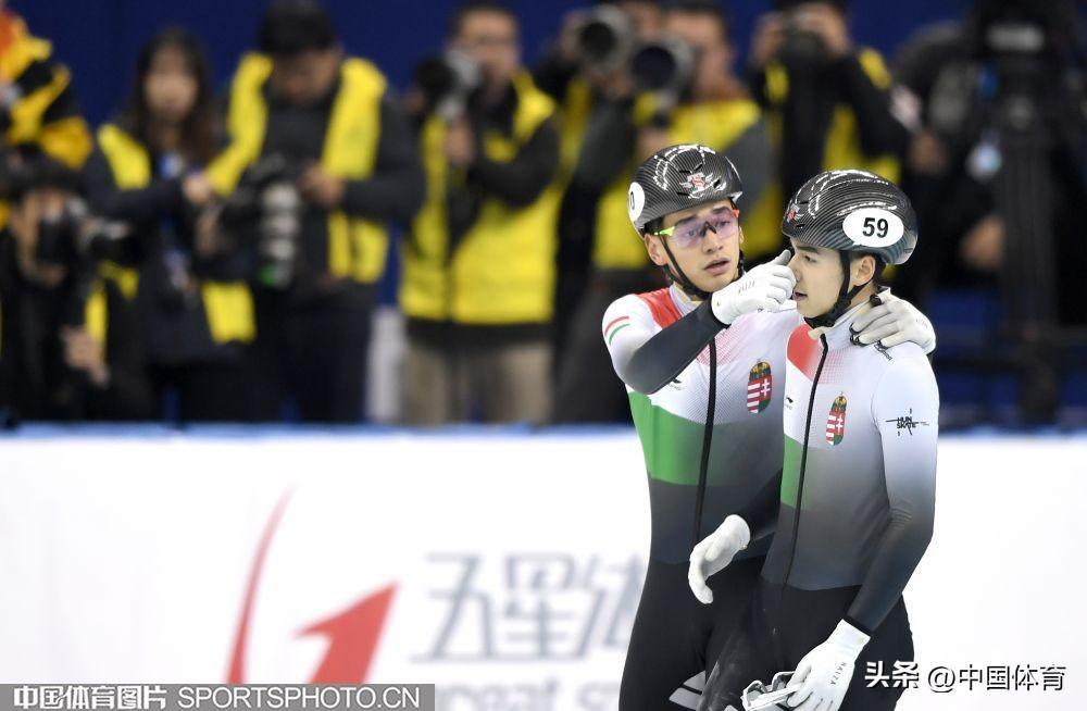 資料圖:2019年短道世界盃上海站男子500米決賽後獲得冠軍的哥哥劉少林(左)安慰弟弟(中國體育圖片 倪敏哲 攝)