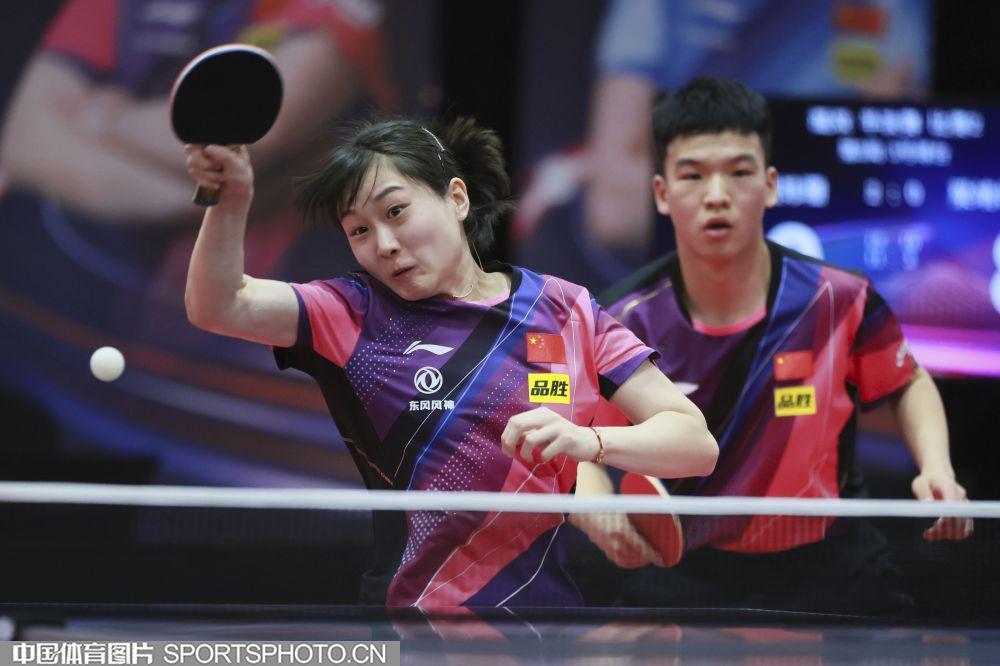 中國體育訊 3月29日,2023國乒“直通德班”選拔賽第二站展開淘汰賽階段的爭奪。在剛剛結束的一場混雙半決賽中,王楚欽/孫穎莎以3比1戰勝林詩棟/蒯曼晉級決賽,四局比分爲11比8、11比3、9比11、11比8。另一場半決賽中,向鵬/劉煒珊以12比10、11比3、11比9連贏三局,大比分3比0戰勝梁靖崑/錢天一晉級決賽。兩對選手將於29日晚爭奪桂冠。(中國體育圖片 鹿麟 攝)