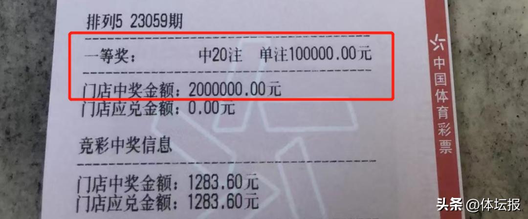 3月10日,體彩“排列5” 第23059期開獎,位於杭州市莫干山路742號的3301104007體彩實體店傳來喜訊。該店一位資深購彩者喜中“排列5”一等獎 20注!共計收穫獎金 200萬元!