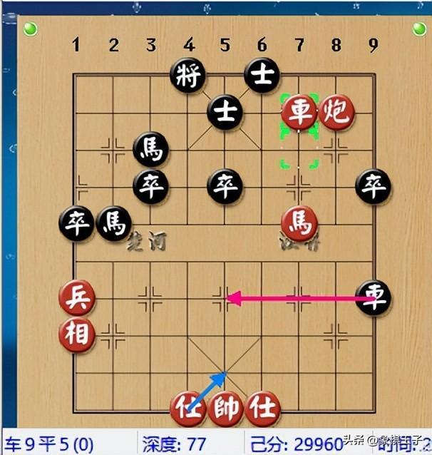 此際,紅車三進一,突出神來之筆,這招表面看,沒什麼,車放到對方的下二路做啥,又沒抽。