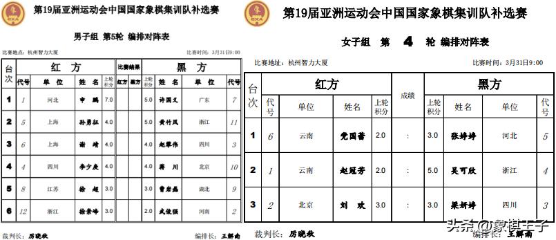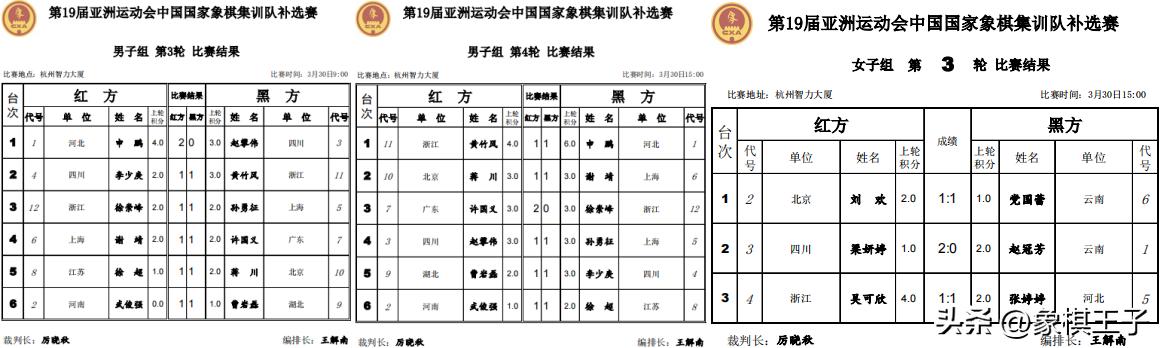 女子組三輪戰罷,吳可欣二勝一平5分第一,梁妍婷、張婷婷、劉歡3分,趙冠芳、黨國蕾2分。