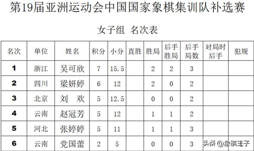 根據競賽和備戰需要,亞運會國家隊選拔賽,均不直播和不公佈棋譜。