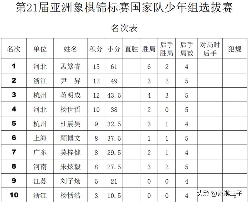 亞錦賽成人可升特大,少年升大師,15歲棋壇明日之星,小魔童孟繁睿所向披靡,連殺楊世哲、蔣明成、杜晨昊、莫梓健、劉子煬、楊恬浩,戰平尹昇、顧博文、宋炫毅。