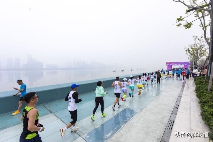 雖說是一場路跑賽事,但主辦方不提供官方計時,選手除了以跑團的形式參與,還有不少家庭和情侶組合。9.23公里的總里程對大多數選手而言,更像是參與了一場全民健身活動。市民李慧娟特意帶上兩個兒子一起跑。“他們作爲小主人,想要通過這種活動培養他們的主人翁精神,爲遠道而來的選手和觀賽者做好服務,也要爲營造亞運氛圍當好志願者。”
