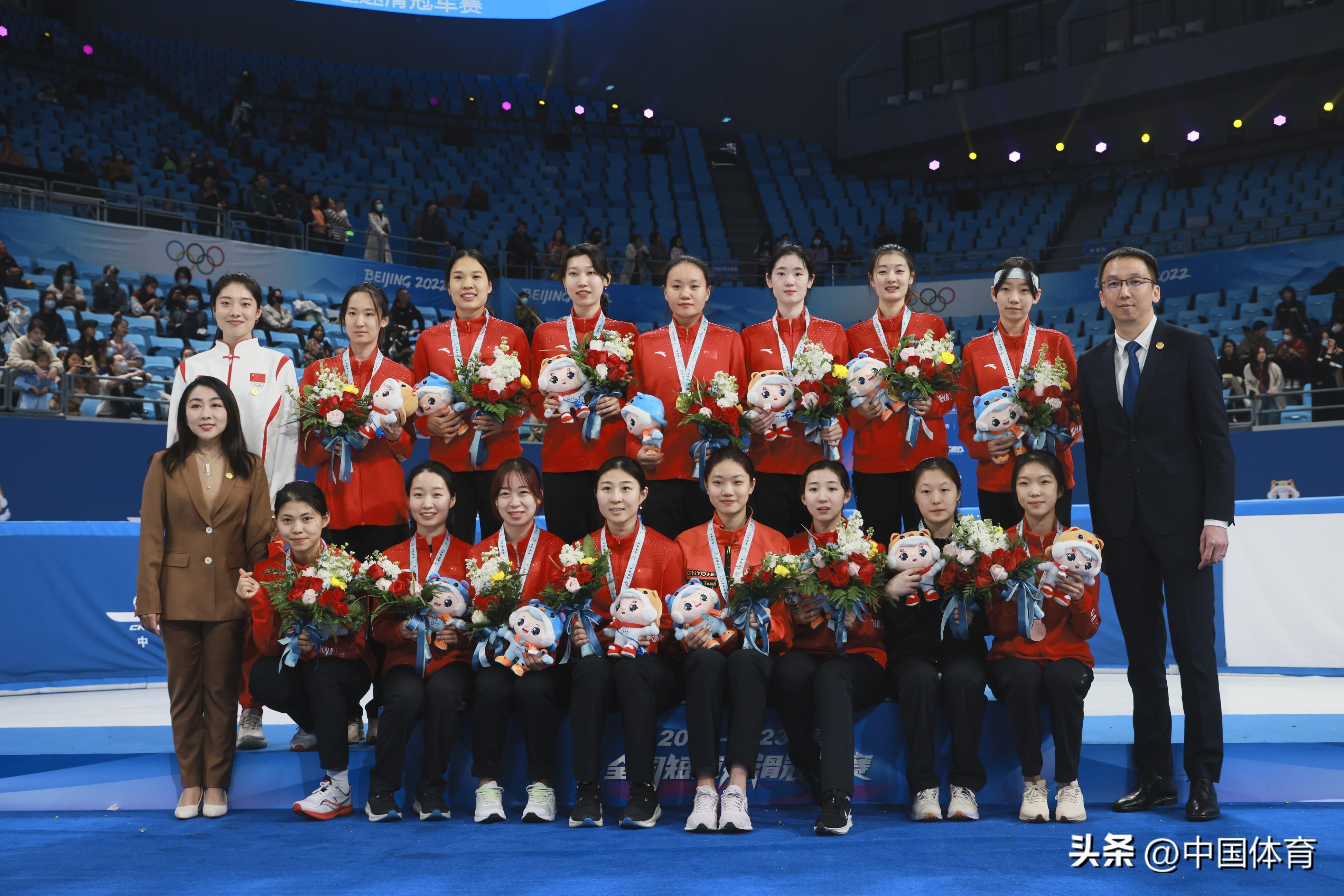 頒獎嘉賓隋文靜(前排左一)與獲得女子3000米接力前三名的隊伍合影留念