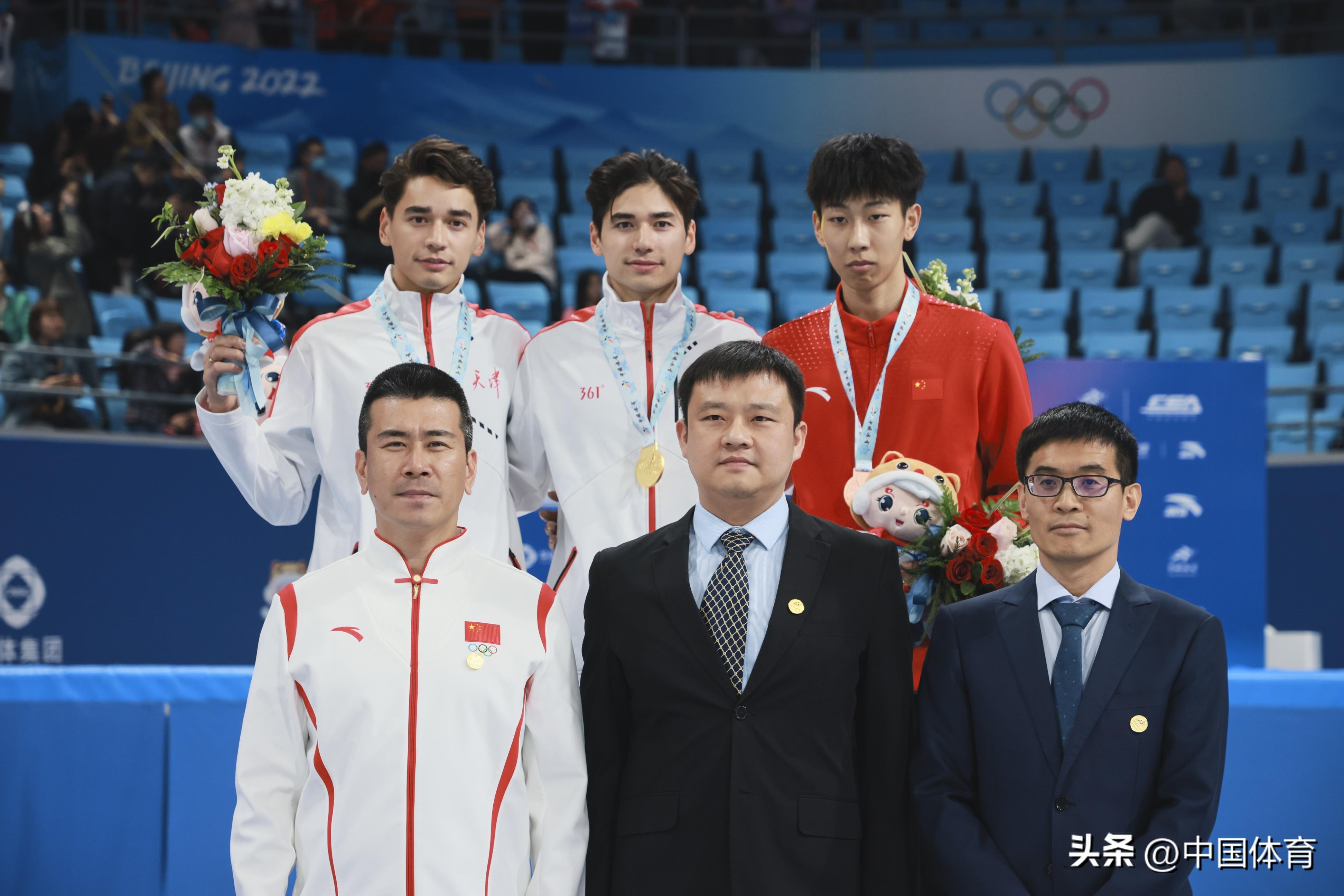 頒獎嘉賓韓曉鵬(前排左一)與男子1000米前三名合影留念