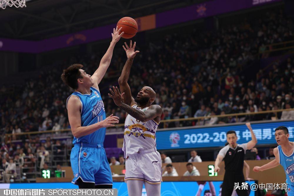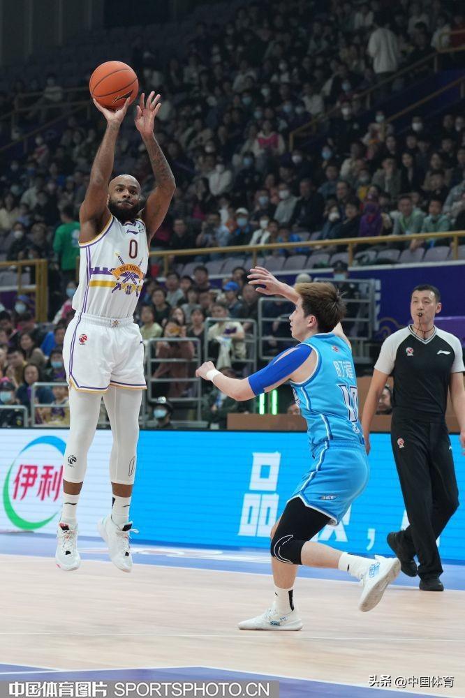 中國體育訊 4月2日晚,在2022-2023賽季CBA常規賽第41輪的一場比賽中,主場作戰的北京控股以99比95戰勝寧波町屋。此役北控全隊5人得分上雙,其中高登砍下24分,張帆也有22分入賬;寧波町屋四人得分上雙,泰勒拿到全場最高分27分,曲虹霖拿到23分。(中國體育圖片 王憲民 攝)