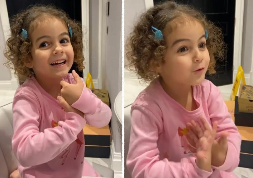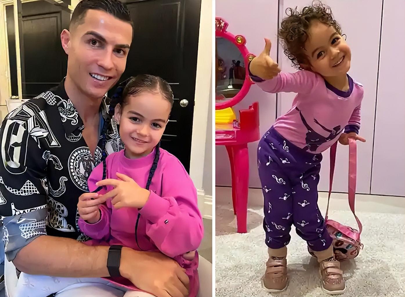 她的眼睛像極了老爸C羅,嘴巴鼻子又和媽媽喬治娜神似,阿拉娜集合了父母的五官優勢,同時又具備個人特色,在“總裁”家的孩子堆中,特別惹眼,深受喜愛。
