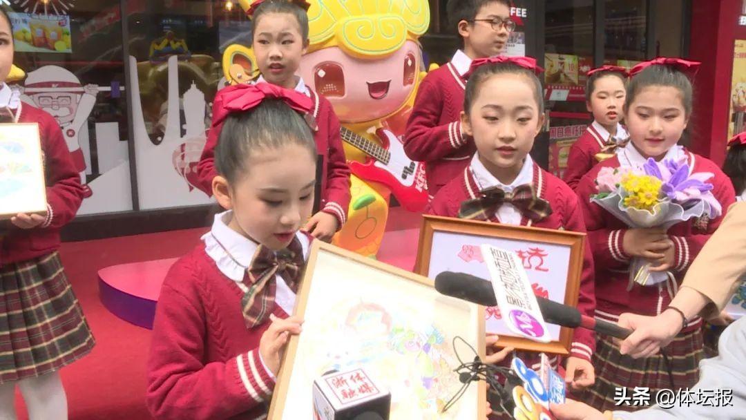 現場,來自杭州各地的小朋友爲三位壽星送上自己精心製作的禮物。“我準備的扇子畫,畫的是有千年傳統歷史的宋韻文化,把它送給宸宸、琮琮和蓮蓮,祝它們3週歲生日快樂。” 現場一位中國藍少兒藝術團表演者介紹道。