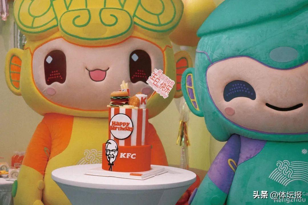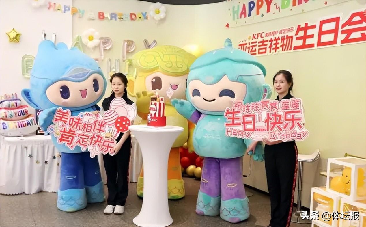 今天,杭州亞運會吉祥物琮琮、宸宸和蓮蓮就在杭州濱江星光大道肯德基亞運主題餐廳,度過了3週歲生日。