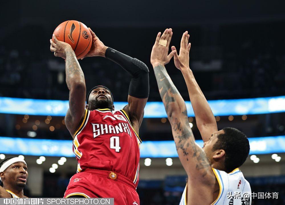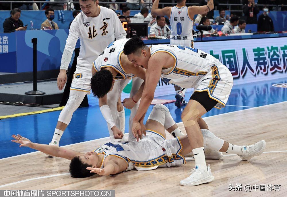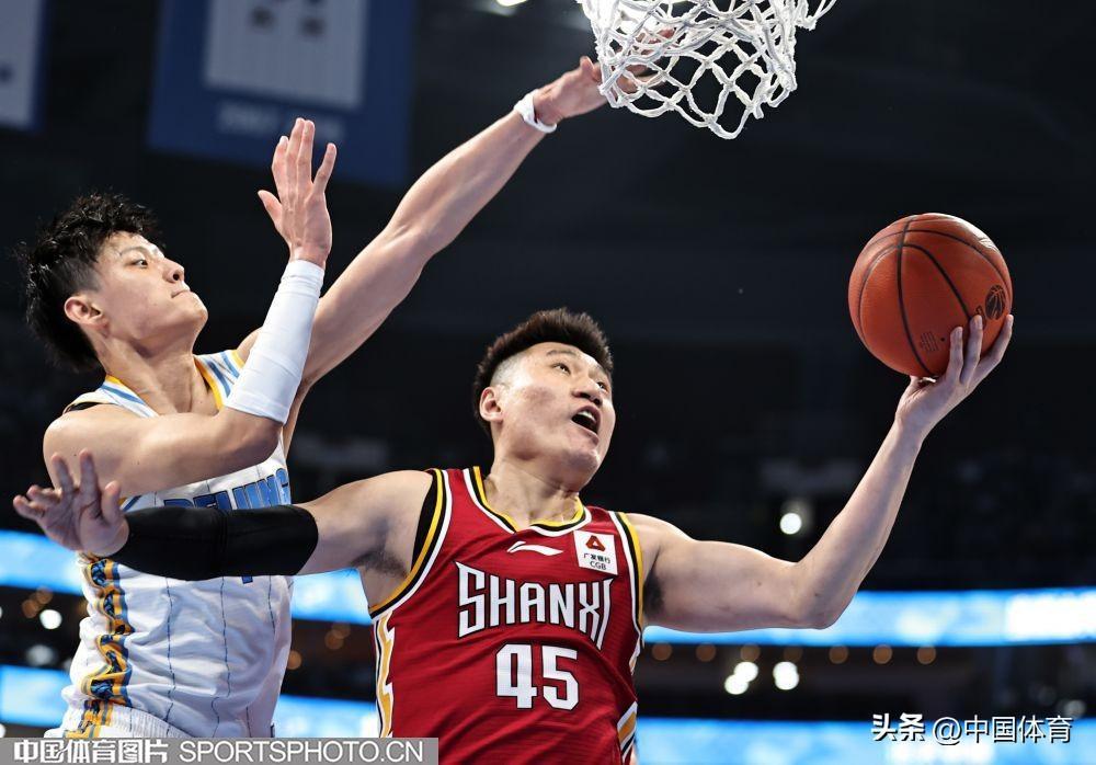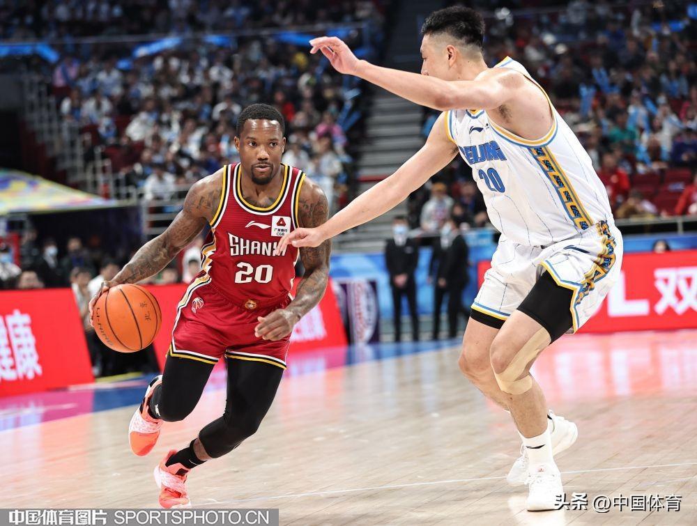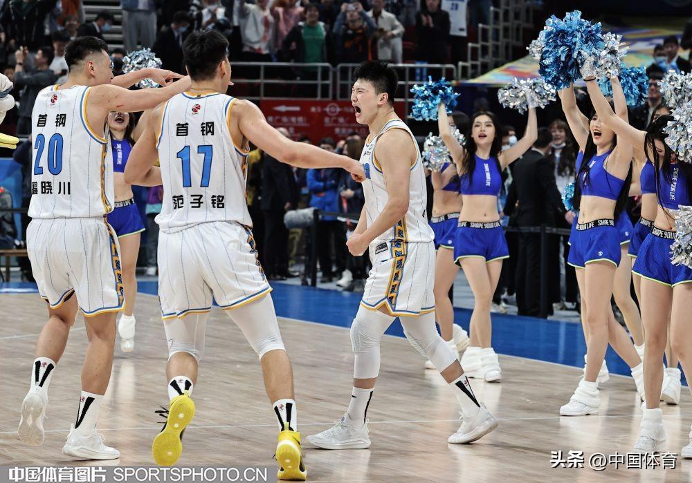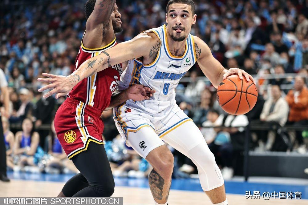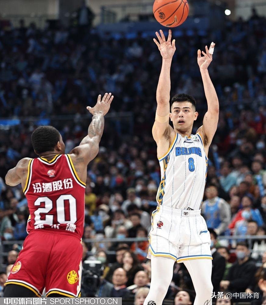 中國體育訊 4月3日晚,2022-2023賽季CBA常規賽第41輪的一場比賽在北京五棵松體育館舉行。主場作戰的北京首鋼隊(白衣)憑藉雷蒙三分球壓哨絕殺,以105比103險勝山西汾酒股份隊(紅衣)。(中國體育圖片 王憲民 攝)