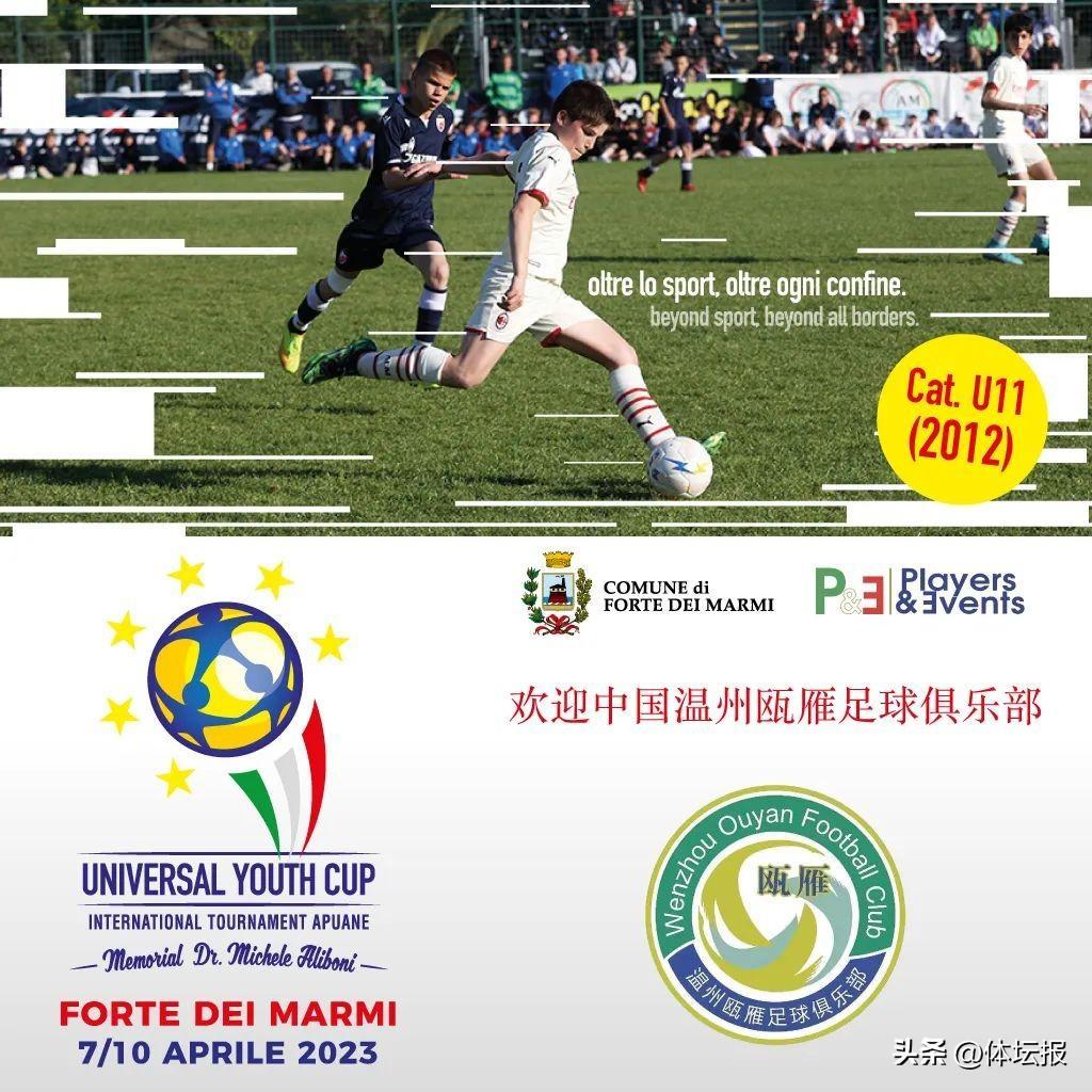 在即將舉行的2023第十一屆國際青少年足球錦標賽的主題海報上,溫州甌雁足球俱樂部的LOGO與尤文圖斯、AC米蘭、阿賈克斯等國際著名足球俱樂部排列在一起。作爲參賽的唯一中國球隊,溫州甌雁少年足球隊於4月4日啓程奔赴意大利。這也是溫州第一次代表中國青少年足球隊參加國際性的青少年足球錦標賽。