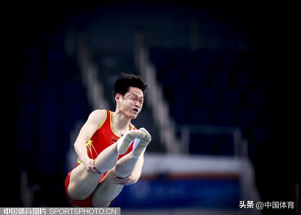 上海選手肖金雨在男子蹦牀比賽中