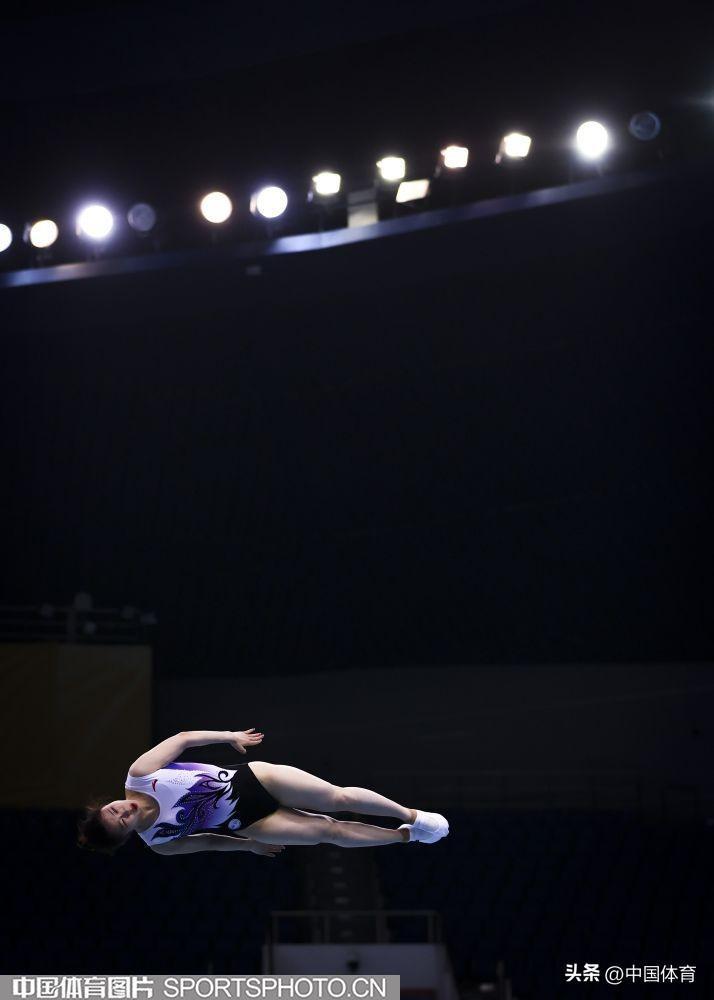 山西選手楊顏葦在男子蹦牀比賽中