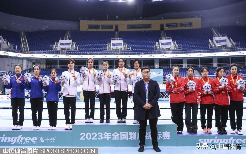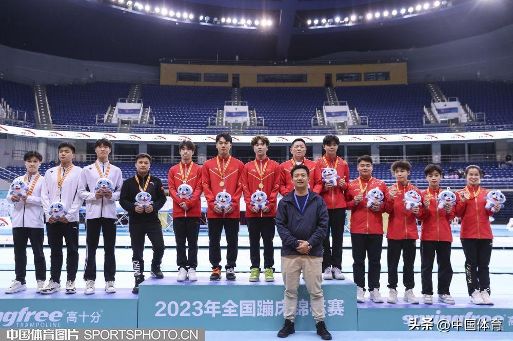 中國體育訊 4月7日,在青島國信體育中心舉行的2023全國蹦牀錦標賽決出男女蹦牀團體、男子單跳團體和男女雙蹦牀團體五枚金牌,廣東隊收穫兩金,江蘇、浙江、天津各奪一冠。江蘇隊王梓賽和天津隊朱雪瑩頭名晉級奧運項目男、女網上個人決賽。
