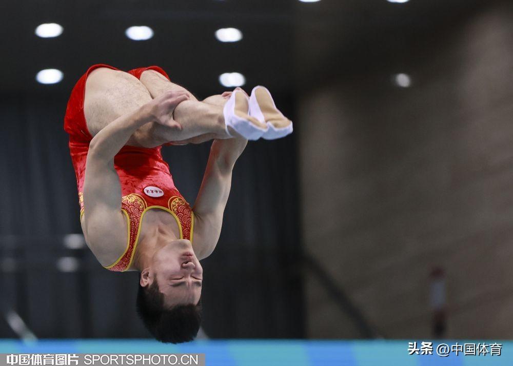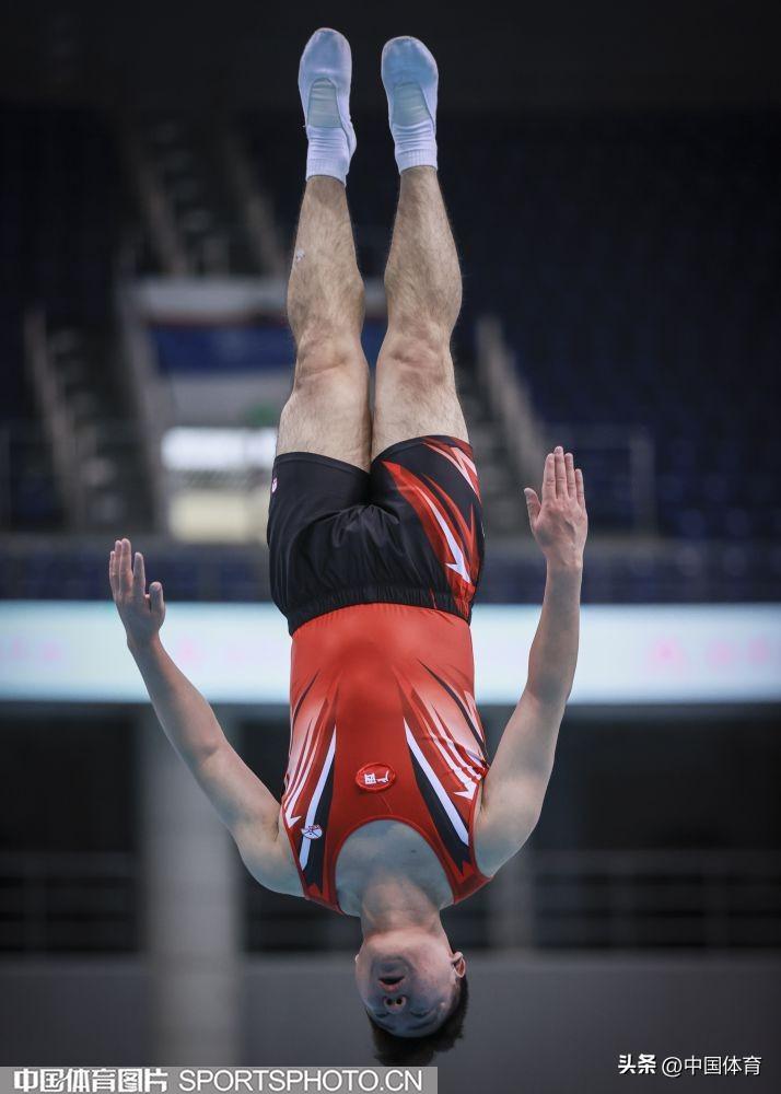 湖南省隊嚴浪宇在男子蹦牀個人半決賽中