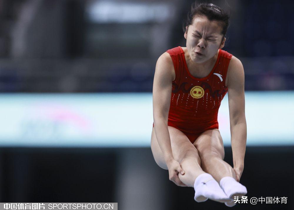 廣東隊賴慧靈在女子雙蹦牀團體決賽中