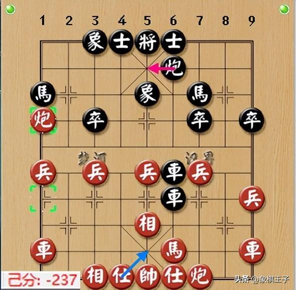 中局一招雙車卡馬後,本有藉助後炮力量,直接揮車砍馬的棋,坦克下出最強一步,炮6平5,擺中炮。