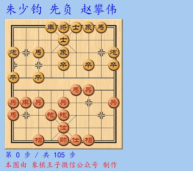 朱少鈞本是車殺了卒,黑炮將,紅上帥,黑車再將,紅帥登三樓,雖會失仕相,難言穩和,但缺一二仕相,車炮對車炮,和機還是很大。