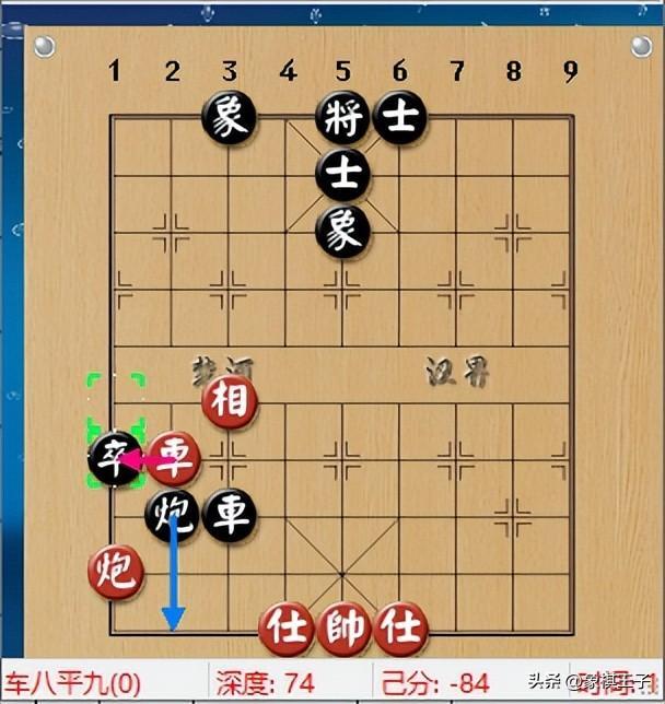 黑方開始也無好法,直打入車炮單缺相對車炮卒士象全,紅車拉住黑車炮,黑卒1進1,棄卒,下出勝負手。