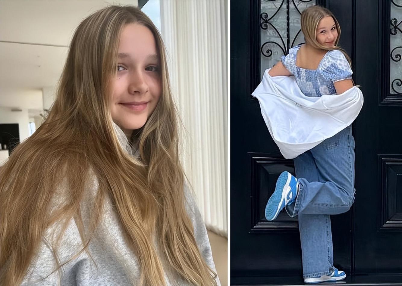 心情不錯的貝克漢姆夫婦,也在聚會之後,帶着女兒小七出街,不知不覺,哈珀就快滿12歲了,這個小姑娘變化很大,發育明顯,個頭長高了不少,整個人已經有點小女人的嫵媚與成熟。