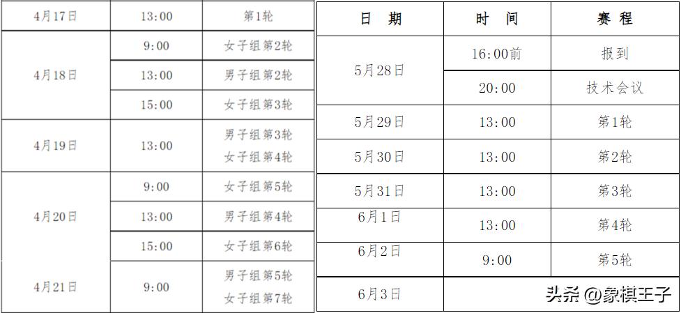 賽程每比賽日下午一點開賽,決戰日上午九點,比較遺憾的是,根據競賽和備戰需要,亞運會國家隊選拔賽,均不直播和不公佈棋譜。