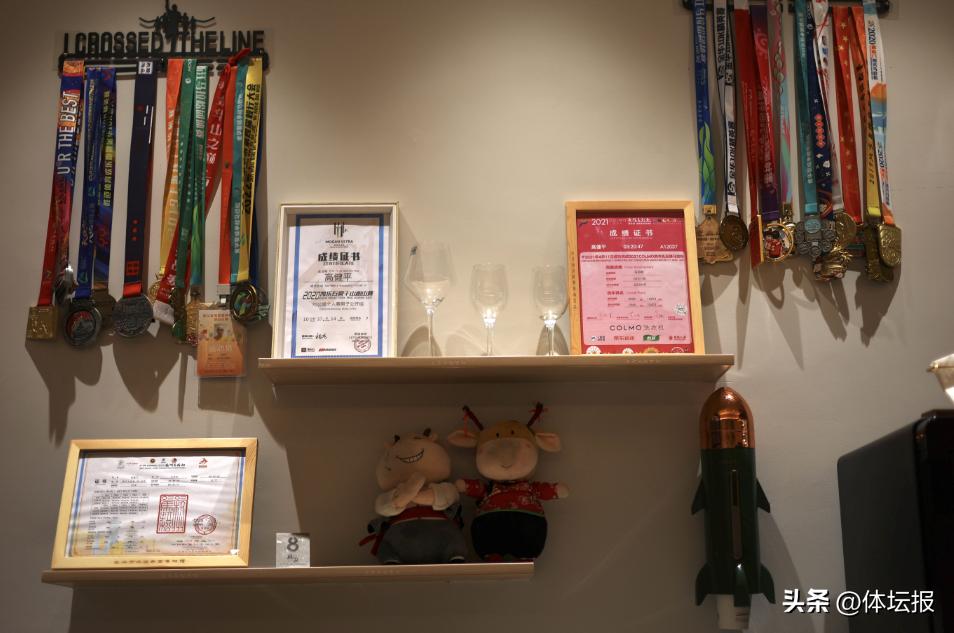 在金華市雅堂街,有一家溫馨有特色的牛排店。走進店裏,牆上掛着琳琅滿目的獎牌和跑馬、跑山的照片,書架上擺放着營養食譜、健身知識。