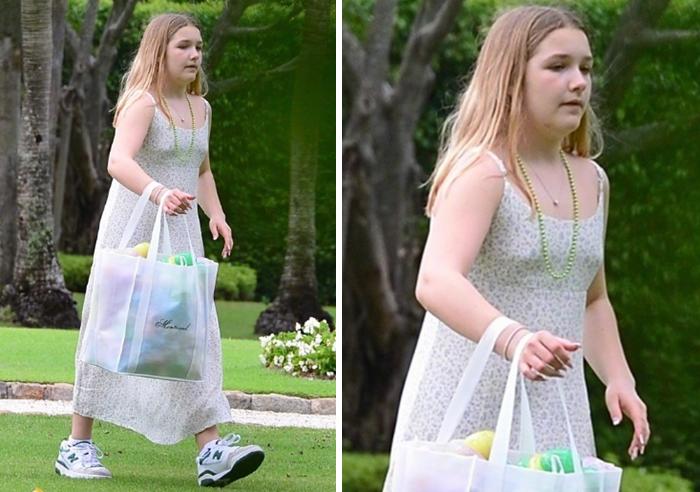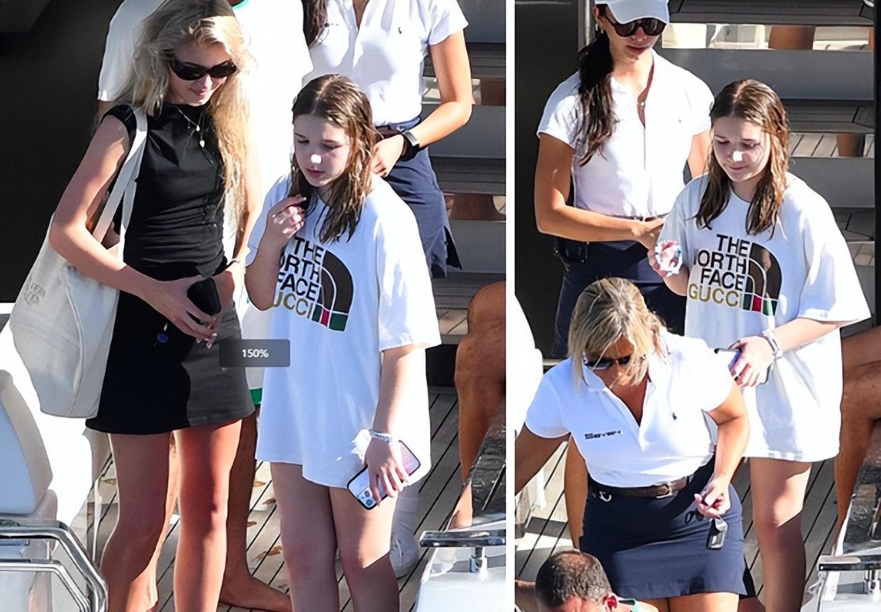此外,12歲的女兒哈珀也清爽裝扮,穿着一條寬鬆長裙,非常可愛,小七還有點肉嘟嘟的感覺,身材發育也是肉眼可見,還需要繼續堅持運動。而登上游艇之後,小七換上了一件大號T恤,直接把大腿屁股都遮完了,頭髮也被海水淋溼了,看起來有點小嫵媚的感覺。