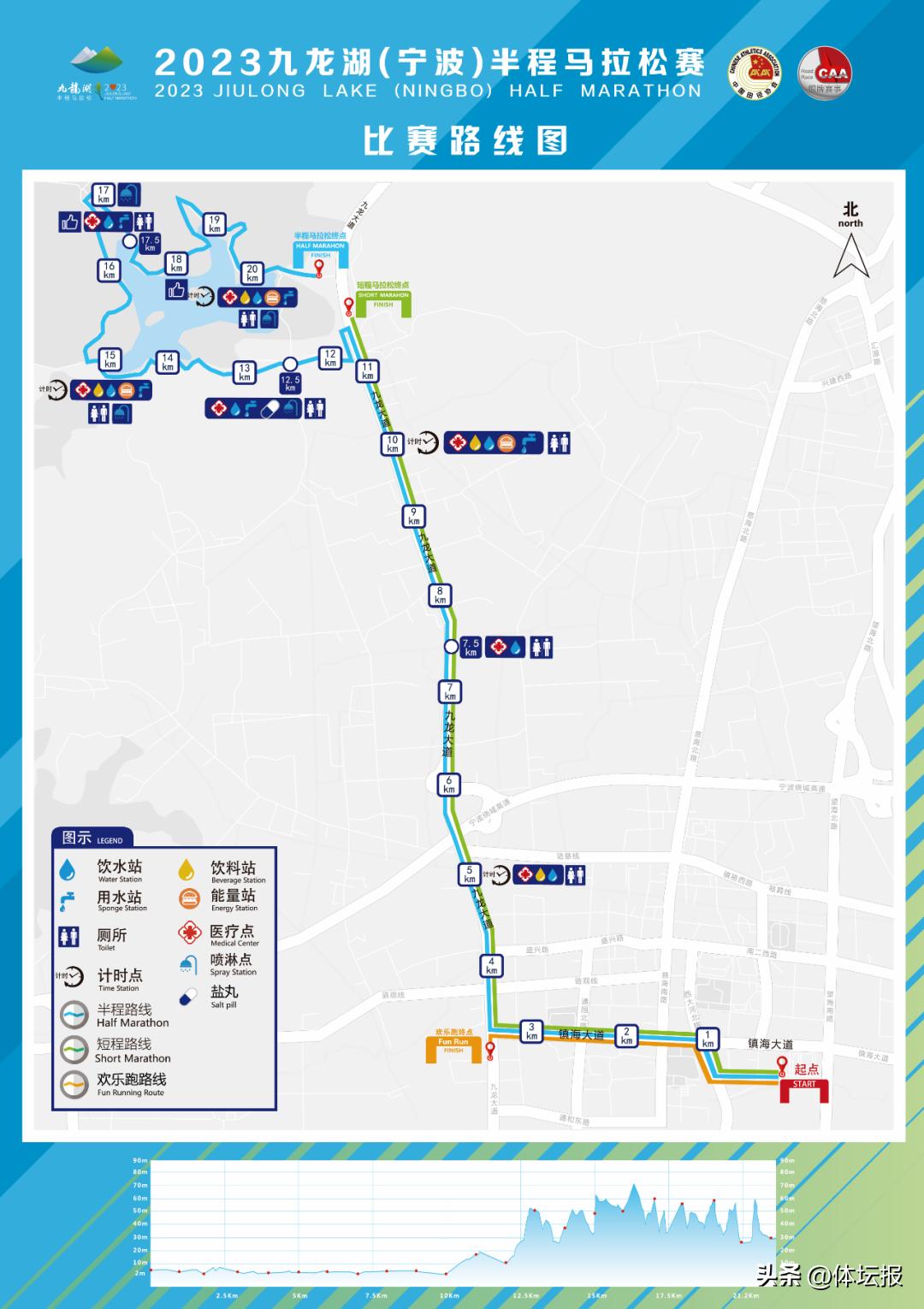 賽事起點設置在市民廣場,參賽選手從市民廣場出發,途經民和路、西大河南路、鎮海大道、九龍大道,在鎮海區公路段九龍湖養護站折返,沿香山路進入被譽爲“最美賽道”的九龍湖風景區,到達半程終點九龍湖遊客服務中心。短程選手從市民廣場出發,途經民和路、西大河南路、鎮海大道、九龍大道到達終點。歡樂跑選手從市民廣場出發,途經民和路、西大河南路、鎮海大道到達終點。