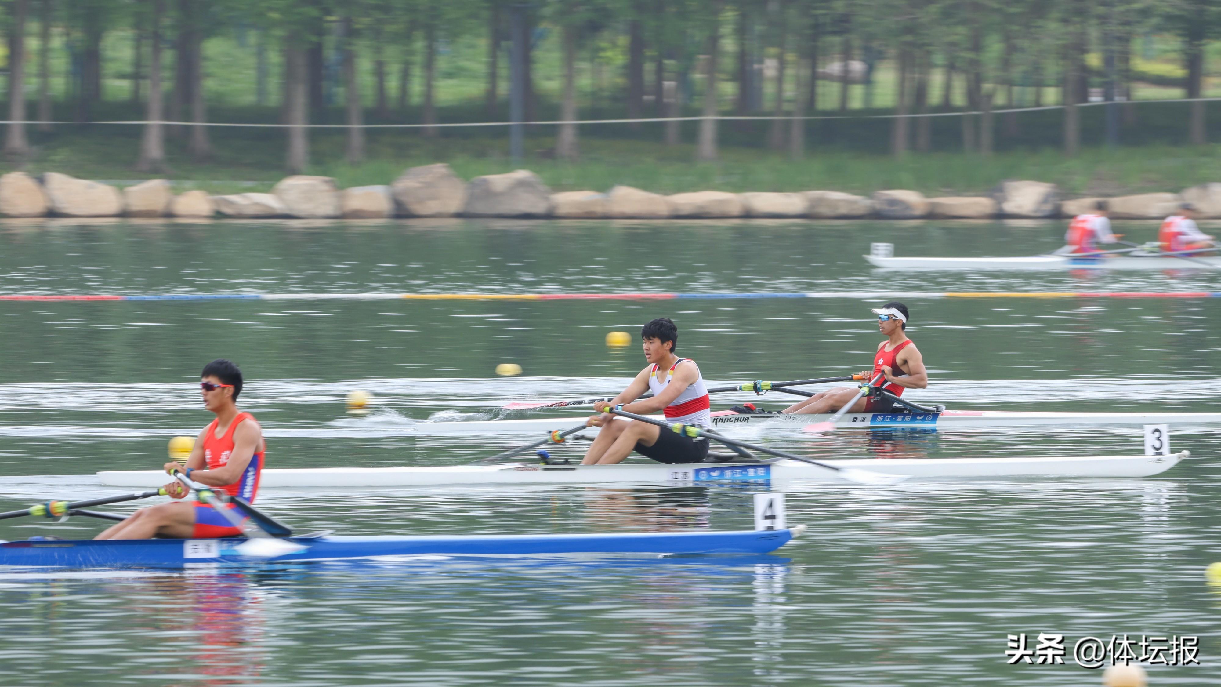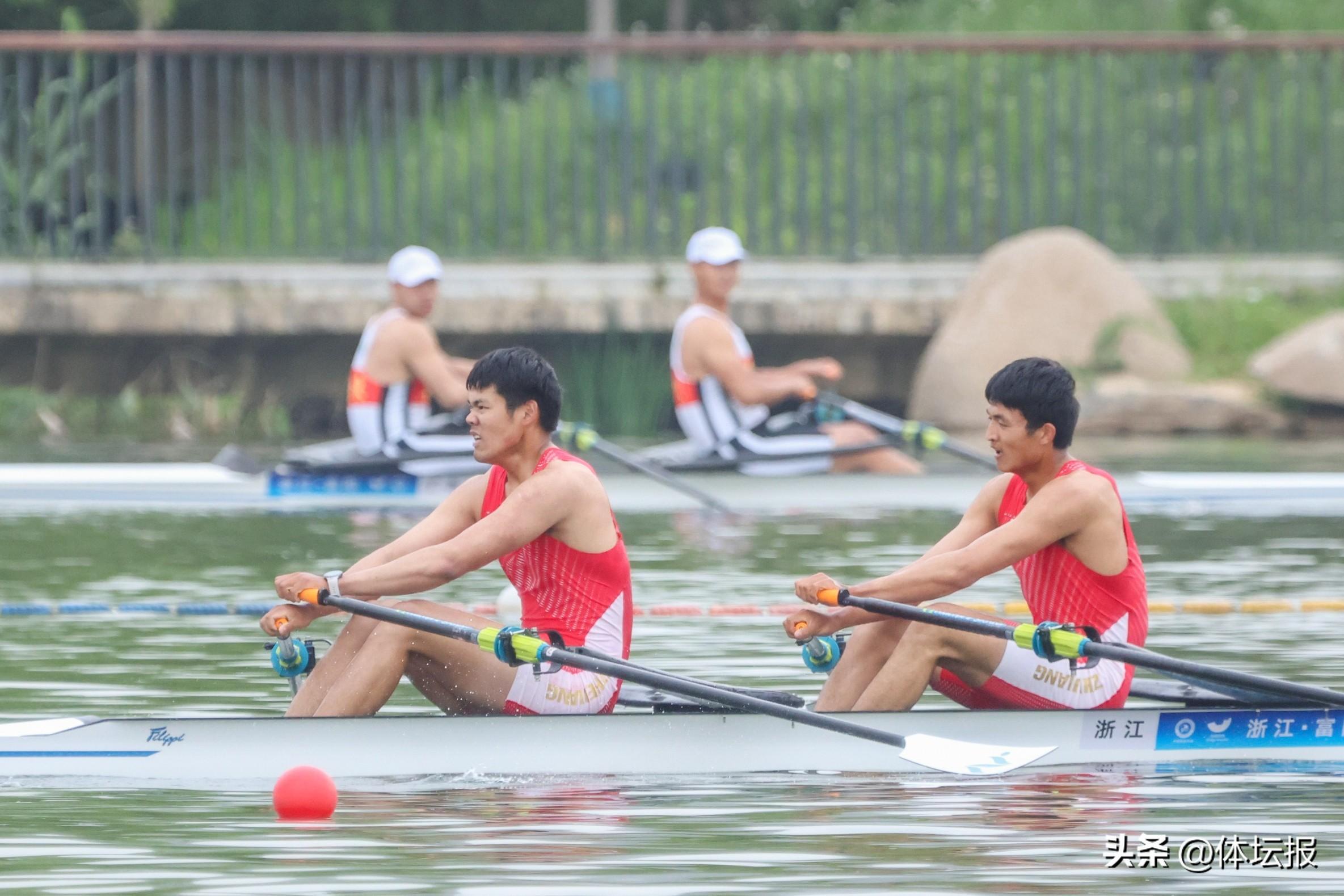 浙江男子賽艇組此次共有17名運動員參賽,以雙槳項目爲主項,在第一階段參加單人艇、雙人艇、四人艇、雙人單槳和四人單槳,總共七個項目的比賽。首個比賽日的成年組男子雙人雙槳預賽,來自浙江隊的鄭智超和張慶雨以6分28秒15的成績拿到小組第一,這讓他們離國家集訓隊的選拔更近了一步。“他們今天劃的水平在意料之中,但名次是在意料之外。”浙江男子賽艇組主教練吳林告訴記者,本次參賽除了讓隊員們與各省頂尖高手切磋,更重要的還是爲了亞運會前夕國家隊的選拔而來,“希望能在一兩個項目上有隊員獲得前兩名,進入國家隊集訓,爭取杭州亞運會的參賽機會。”