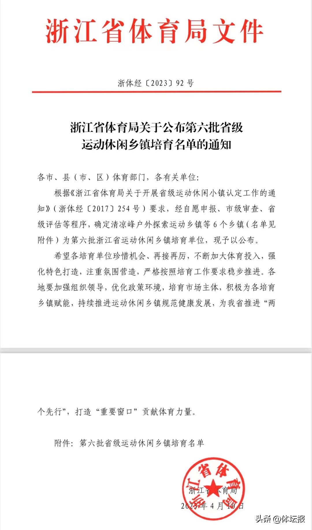 第六批省級運動休閒鄉鎮培育名單