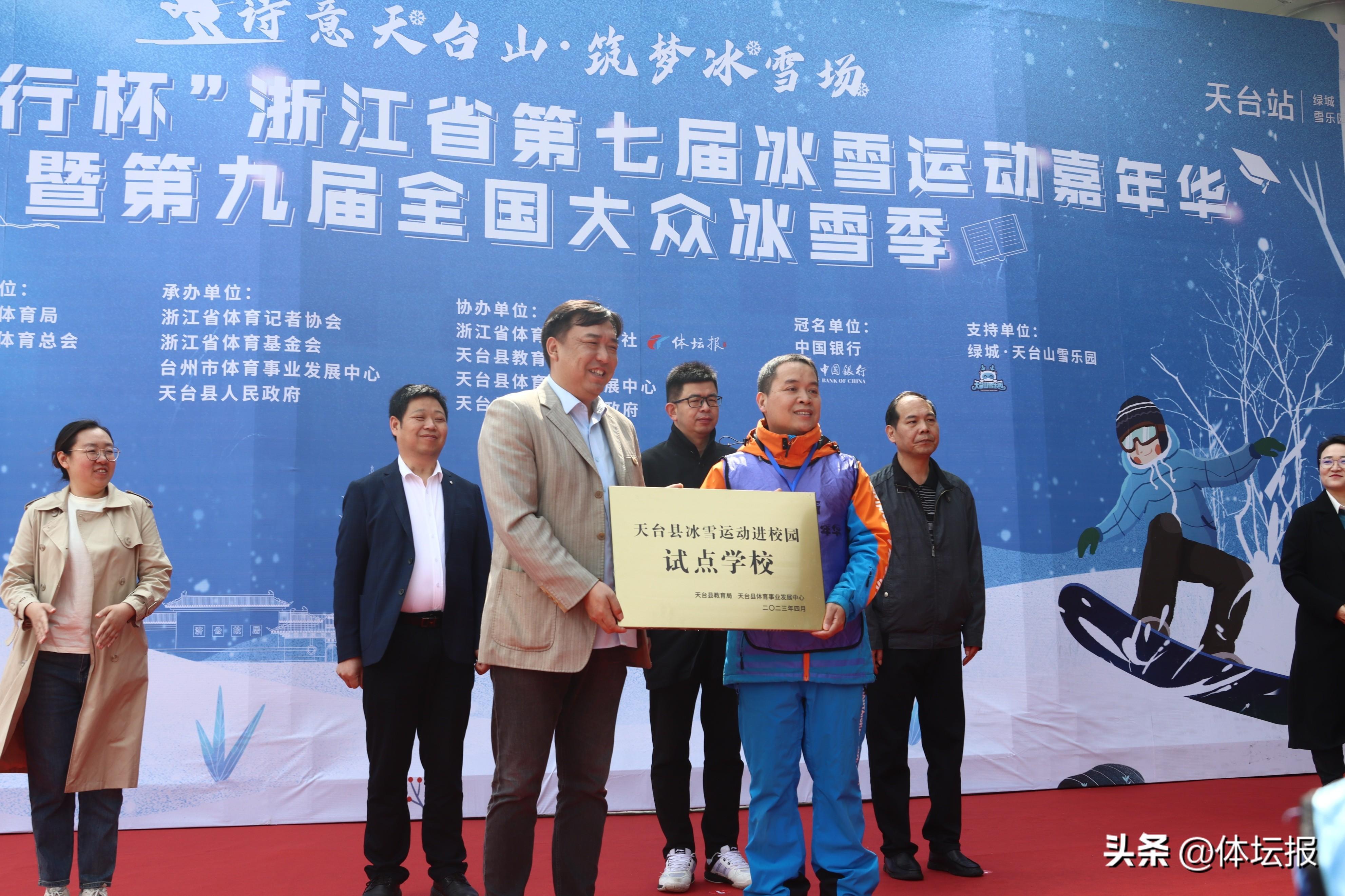 孩子們盡情戲雪、滑雪,一同前來的老師們則“帶着任務”而來。如何更好地推進冰雪運動進校園,是不少天台中小學校的體育負責人此行的重要目的。事實上,自冰雪運動嘉年華開展以來,越來越多浙江中小學校將冰雪納入體育課程,不少學校開啓冰雪課堂,增強學生對冰雪運動知識的瞭解,引導學生關注冰雪、愛上冰雪,“冷運動”成了校園裏的“熱時尚”。爲此,此次嘉年華活動上,天台縣外國語學校被特別授予“天台縣冰雪運動進校園試點學校”。這意味着,冰雪運動走進天台縣各中小學校邁出了堅實的第一步。