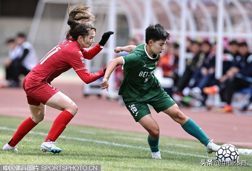 中國體育訊 4月15日,在2023年中國足球協會女子超級聯賽第四輪的一場比賽中,主場作戰的北京隊(綠衣)以0比1負於永川茶山竹海隊(紅衣)。(中國體育圖片 王憲民 攝)雙方隊員、裁判及牽手球童賽前合影王婷邊路突破黃詩貽與吳易繁(左)拼搶譚珊帶球突破,王歡(右)防守李曏與吳易繁(紅衣)爭頂蘇涵控球,李曏(右)防守永川茶山竹海隊門前出現險情李影(中)頭球搶點娜地熱木-克依木(左)與席冬季爭搶王歡與胡月(左)爭搶黃詩貽與吳易繁(左)拼搶