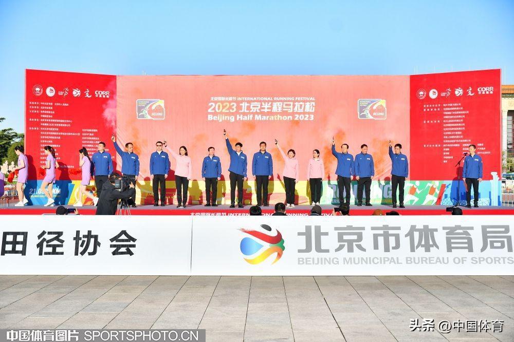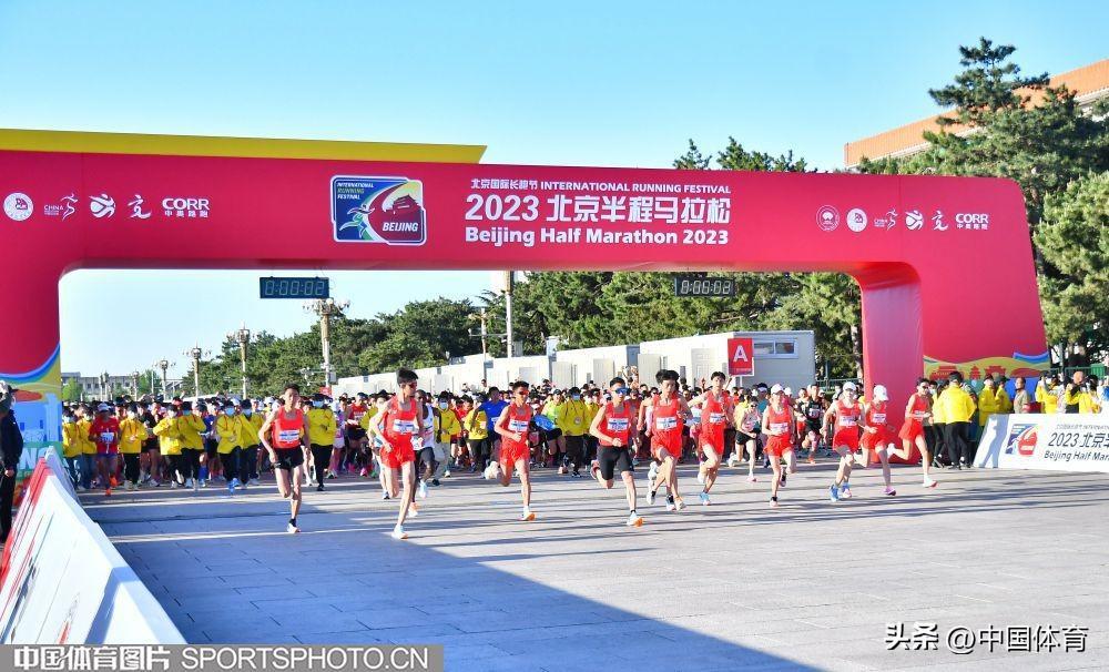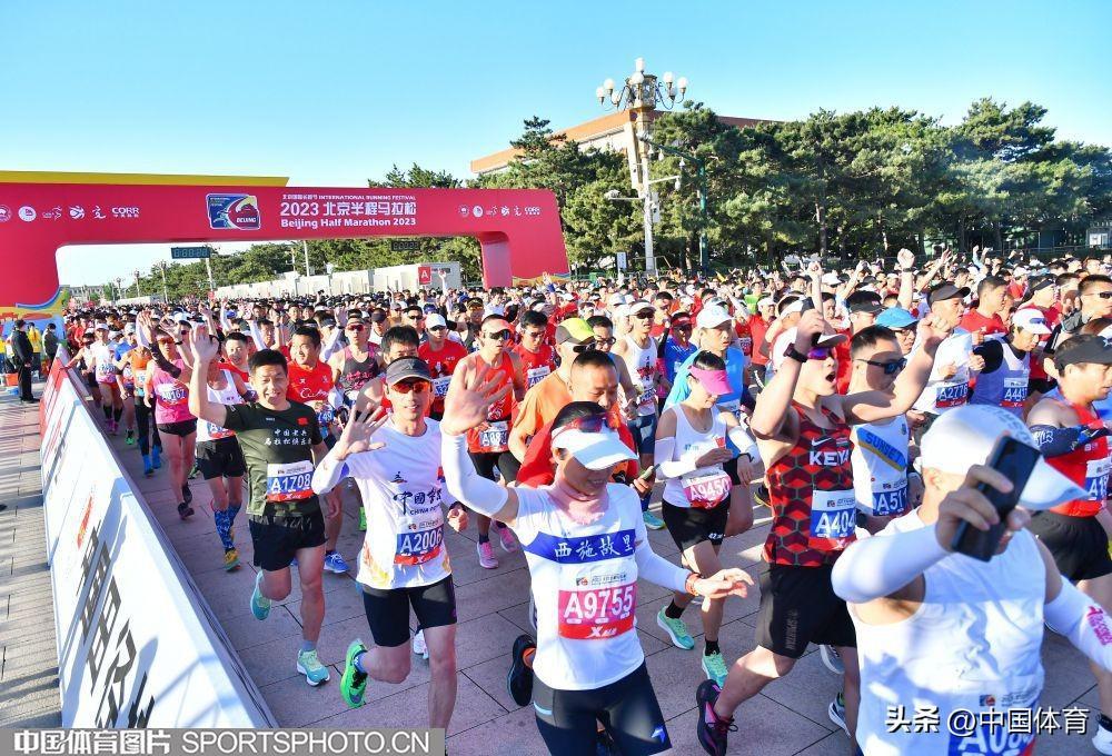 中國體育訊 4月16日7:00時,2023北京國際長跑節-北京半程馬拉松鳴槍起跑,起點爲天安門廣場,終點爲奧林匹克公園中心區慶典廣場。賽事設置男、女兩項,規模達2萬人。經過激烈角逐,肯尼亞選手BRIAN KWEMOI KIRUI以59分37秒奪得男子組冠軍,中國選手楊克古以1小時03分41秒獲得亞軍,彭建華以1小時05分08秒獲得季軍。女子組金牌被中國選手劉敏以1小時11分07秒摘得,夏雨雨和徐冰潔分獲銀牌和銅牌。(中國體育圖片 白宇 攝)
