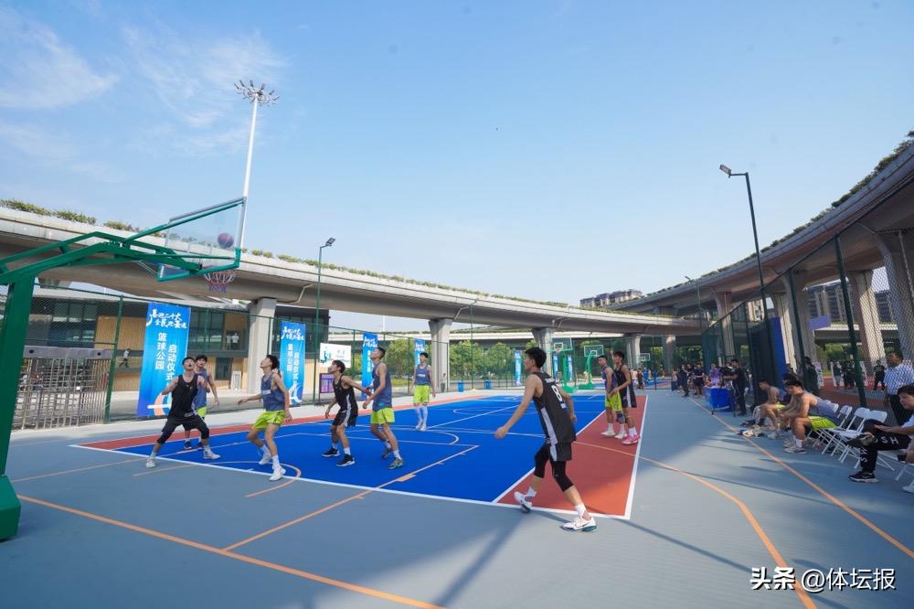 車來車往的杭州德勝快速路與秋石高架橋上,喇叭聲不絕於耳,而橋下卻是另一幅光景:籃球場邊花團錦簇,綠茵場內草地平整,球場外圍還有一圈綿延的綠道蜿蜒盤臥,運動的人羣正如高架上行駛的車輛一般絡繹不絕。